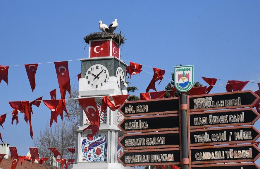 Türkiye’yi, Avrupa Leylek Köyleri Birliği’nde temsil eden tek köy olan Bursa’nın Karacabey ilçesi Eskikaraağaç köyünde balıkçı Adem Yılmaz ile Yaren leyleğin 15 yıllık dostluğu, milyonlar tarafından ilgiyle takip edilen hikayeye dönüşürken; benzer bir hikaye İznik’te de yaşandı. Geçen yıllarda yuva arayışıyla ilçe merkezine gelen ancak uygun alan bulamayınca ilçeyi terk eden leylekler için geçen yıl İznik Belediyesi tarafından meydandaki saat kulesine özel bir yuva yapıldı. Bu yuvayı kısa sürede sahiplenen ve ilçe halkı tarafından ‘Can’ ve ‘Canan’ adı verilen leylek çifti, bu yıl ikinci kez göçten dönüp ilçedeki yuvalarında buluştu.