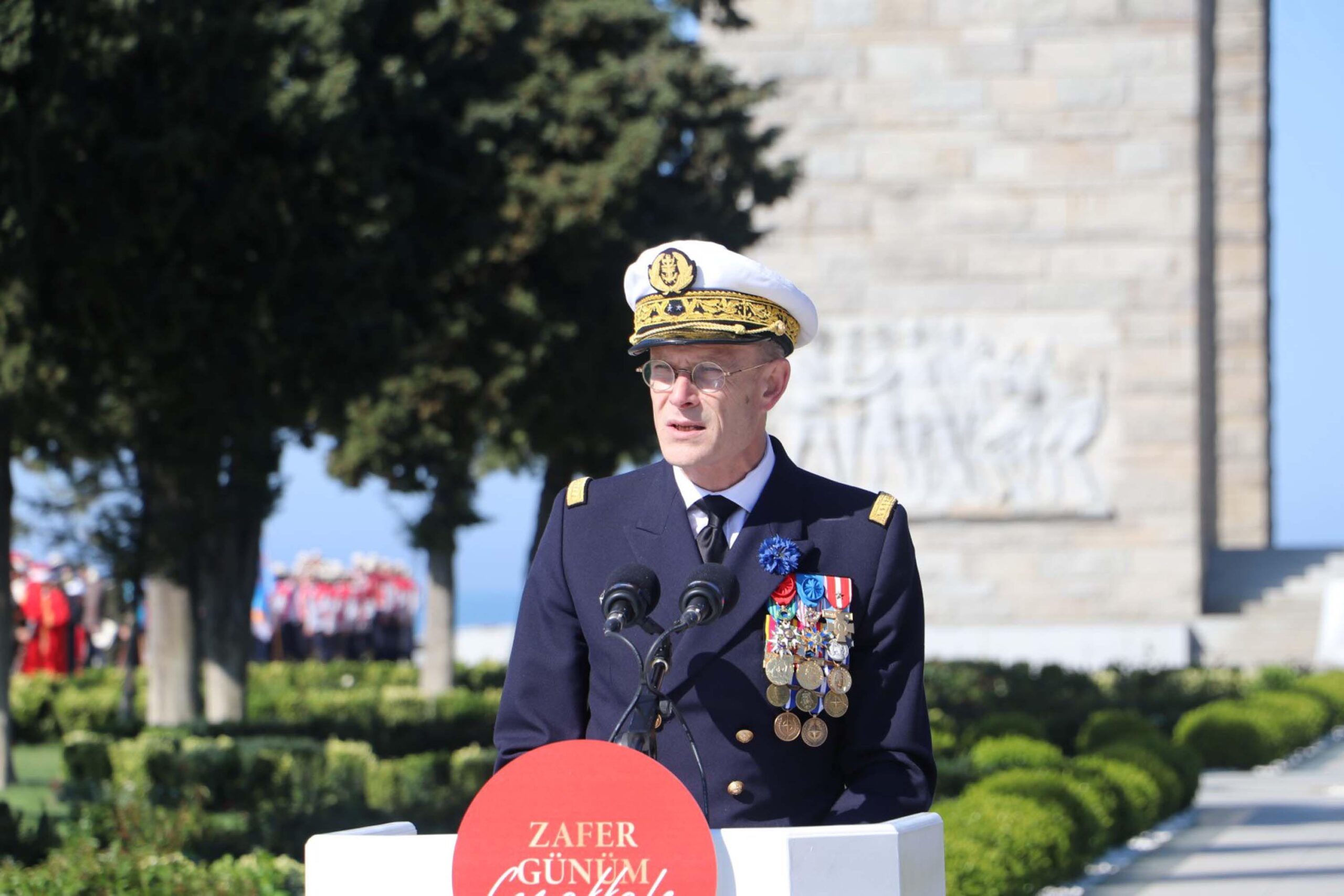 İtilaf Devletleri adına konuşan Fransa Temsilcisi Koramiral Yannıcık Bossu ise "Bu boğaz, ortak tarihimizin en trajik olaylarından birinin sahnesi haline geldi. Sadece savaşın şiddetine değil, aynı zamanda sıcağa, susuzluğa, açlığa ve hastalığa da göğüs geren bu askerler, tarihte kesin bir iz bıraktı. Her iki taraf için de kayıplar ağırdır. İtilaf Devletleri'nde en az 60 bin ölü, buna ek olarak 125 bin yaralı ve hastalık nedeniyle 100 bin ölü. Ne kayıpların büyüklüğü ne de çatışmaların şiddeti, bu adamların cesaretini azaltmadı. Onların cesareti ve fedakarlık ruhu, asla unutulmayacak. Bugün, düşüncelerimiz bu şiddetli çatışmada savaşan, hayatını kaybeden veya yaralanan Türkiye ve eski Osmanlı İmparatorluğu, Birleşik Krallık ve İrlanda, Avustralya, Yeni Zelanda, İngiliz Milletler Topluluğu, Fransa ve denizaşırı topraklarından gelen askerlere yöneliyor. Bu savaşın ortak hafızamızda bıraktığı iz, ülkelerimizin bu savaşçılara duyduğu minnettarlığın bir kanıtıdır" açıklamasında bulundu.