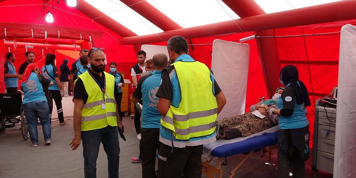 Tatbikat için burada bulunan başkanımız Şükrü Bey, genel müdür yardımcılarımız ve UMKE personeli arkadaşlarımızın bir kısmını buradaki envanterimizle birlikte Libya’ya çok hızlı bir şekilde yolcu ettik. 160 UMKE personeliyle yaklaşık 20’den fazla araçla, 10 ambulansla, 2 sahra hastanesi, 8 EMT-1 seviyesinde sahra hastanesiyle birlikte 160 kişiyle şu an Libya’da hizmet veriyor” diye konuştu.