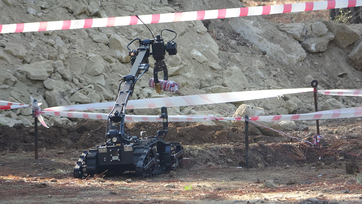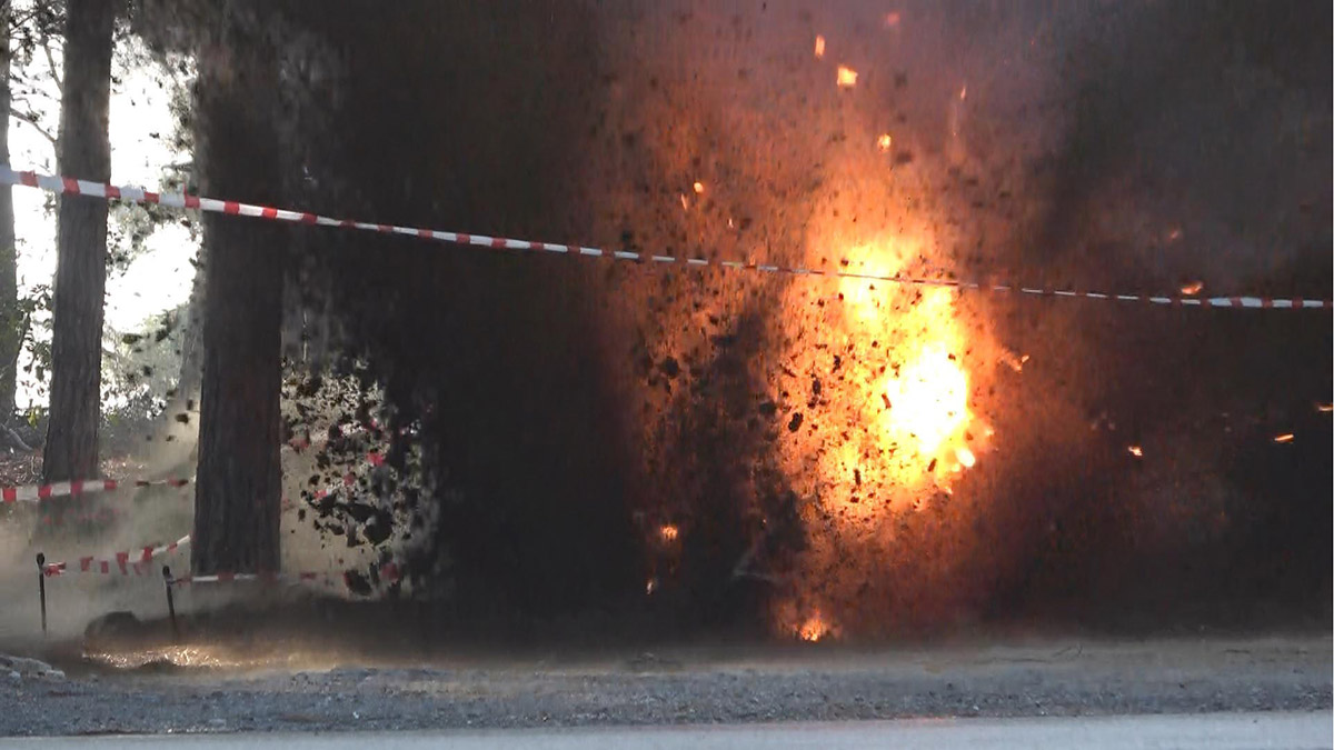 Çanakkale’nin Eceabat ilçesindeki Şehitler Abidesi’nde devam eden teknik alt ve üstyapı çalışmaları sırasında bulunan Çanakkale Savaşı’ndan kalma patlamamış top mermisi , jandarma ekiplerince uzaktan kumandalı bomba imha robotuyla kontrollü bir şekilde imha edildi.