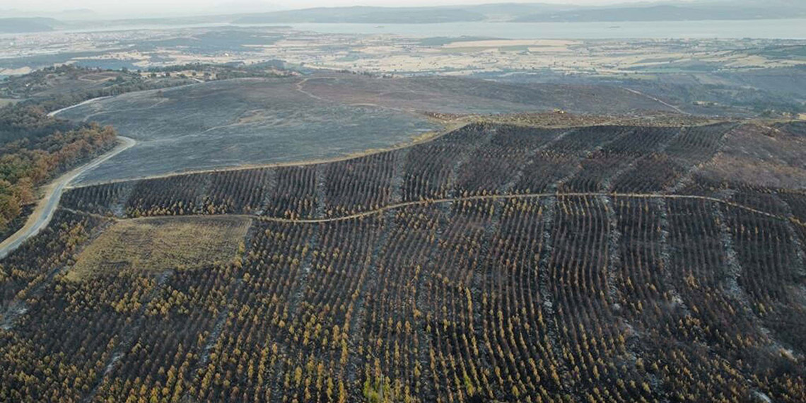 Çanakkale’deki yangında 2 bin 500 hektar alanın zarar gördüğü belirtildi.