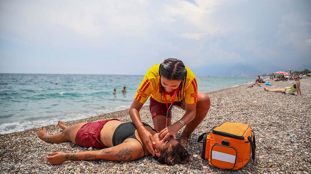 Sahil şeridinin cankurtaranları, boş buldukları zamanlarda tatbikat yapıp, eğitimlerini ve bilgilerini taze tutmaya özen gösteriyor. Cankurtaran Azra Yılmaz (27), mimari restorasyon bölümü mezunu olduğunu, denizi ve yüzmeyi çok sevdiği için cankurtaranlığı tercih ettiğini söyledi. İşinin disiplinine hayran olduğunu anlatan Yılmaz, “İnsanlara dokunmak, onların can güvenliğini sağlamak beni mutlu ediyor. Meslektaşlarımla sabah ilk saatlerden akşam saatlerine kadar denizi izliyor, boğulma vakalarını yaşanmadan tespit edip müdahale etmeye gayret ediyoruz” diye konuştu.
