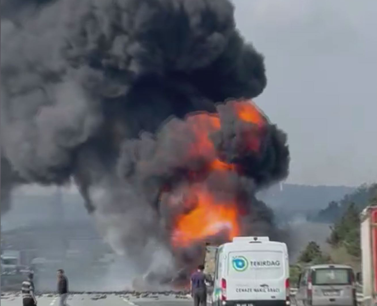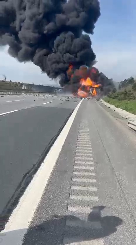 Olay yerine çok sayıda itfaiye ekibi sevk edildi. TIR'ın dorsesinde patlamalar olduğu görüldü. Yangın nedeniyle yol tamamen trafiğe kapandı. Ekiplerin yangına müdahalesi sürüyor.