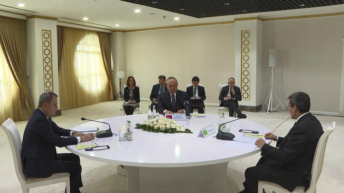 Dışişleri Bakanı Mevlüt Çavuşoğlu, resmi temaslarda bulunmak üzere geldiği Türkmenistan’ın Avaza bölgesinde Türkiye-Azerbaycan-Türkmenistan Üçlü Dışişleri Bakanları Toplantısı’na katıldı.