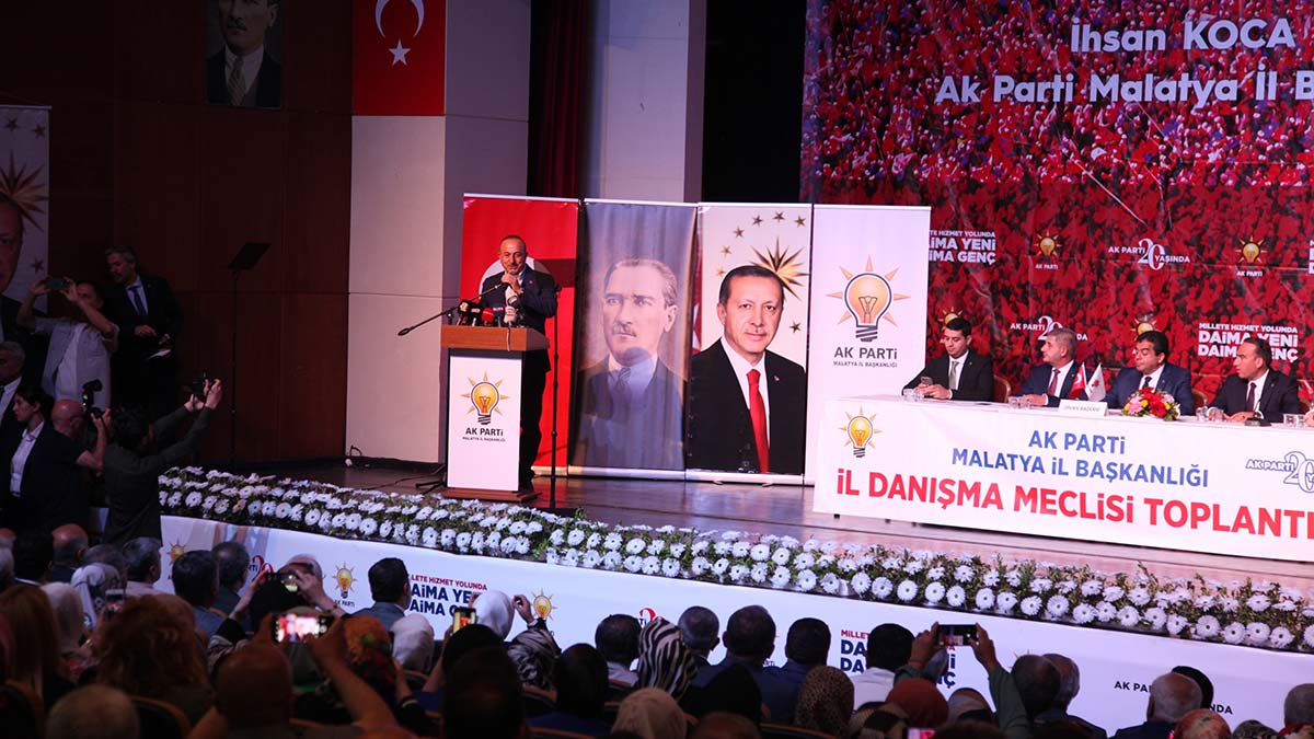 Dışişleri Bakanı Çavuşoğlu, çeşitli temaslarda bulunmak üzere geldiği Malatya’da, AK Parti Genişletilmiş İl Danışma Meclisi Toplantısı’na katıldı. Programda Bakan Çavuşoğlu’nun yanı sıra milletvekilleri, belediye başkanları ve çok sayıda partili de yer aldı. Burada konuşan Çavuşoğlu, milletten aldıkları güçle 20 yıldır Cumhurbaşkanı Recep Tayyip Erdoğan’ın liderliğinde Türkiye üzerinde oynanan oyunları bozduklarını söyledi. Bölgeye refah getirecek politikaları hayata geçirip, uluslararası siyasete yön verdiklerini kaydeden Bakan Çavuşoğlu, şunları söyledi: