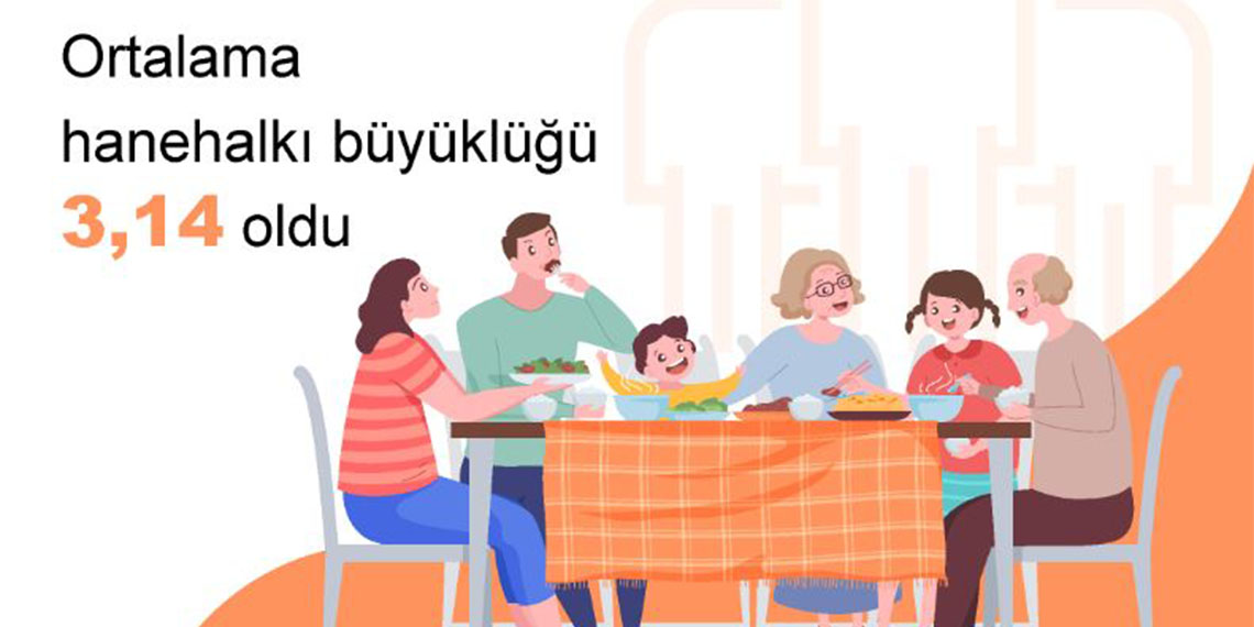 Türkiye İstatistik Kurumu (TÜİK), 15-21 Aile Haftası’na özel olarak ‘İstatistiklerle Aile, 2023’ bültenini yayımladı. Buna göre; Türkiye’de ortalama hanehalkı büyüklüğü yıllar içerisinde azalma eğilimi gösterdi. 2008 yılında 4 kişi olan aile büyüklüğü, 2023’te 3,14 kişiye düştü. Ortalama aile büyüklüğü en yüksek il 4,86 kişi ile Şırnak olurken; 4,67 kişi ile Şanlıurfa ve 4,61 kişi ile Batman ortalama aile büyüklüğünün yüksek olduğu diğer iller olarak gerçekleşti. Ortalama aile büyüklüğünün en düşük olduğu iller ise 2,54 kişi ile Çanakkale, 2,60 kişi ile Giresun ve 2,61 kişi ile Balıkesir oldu.