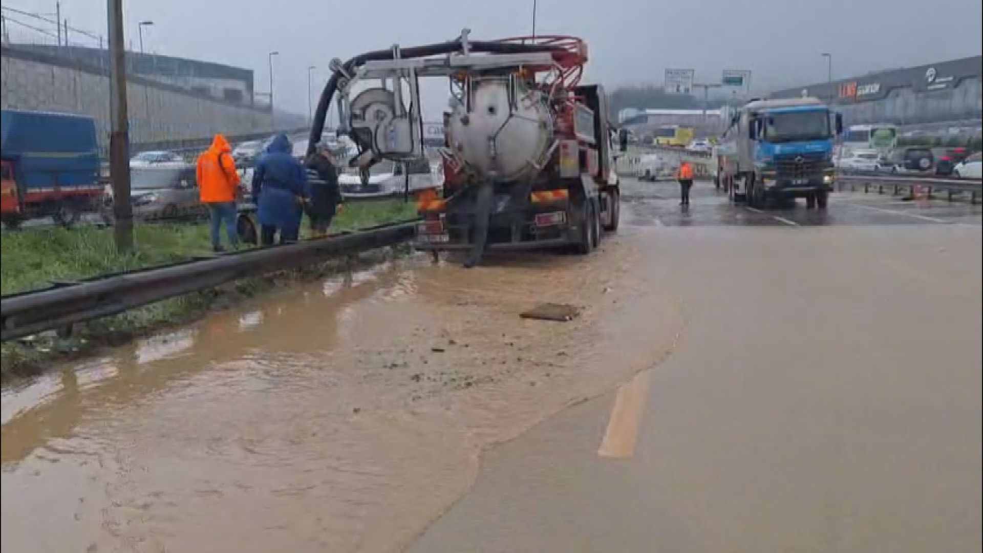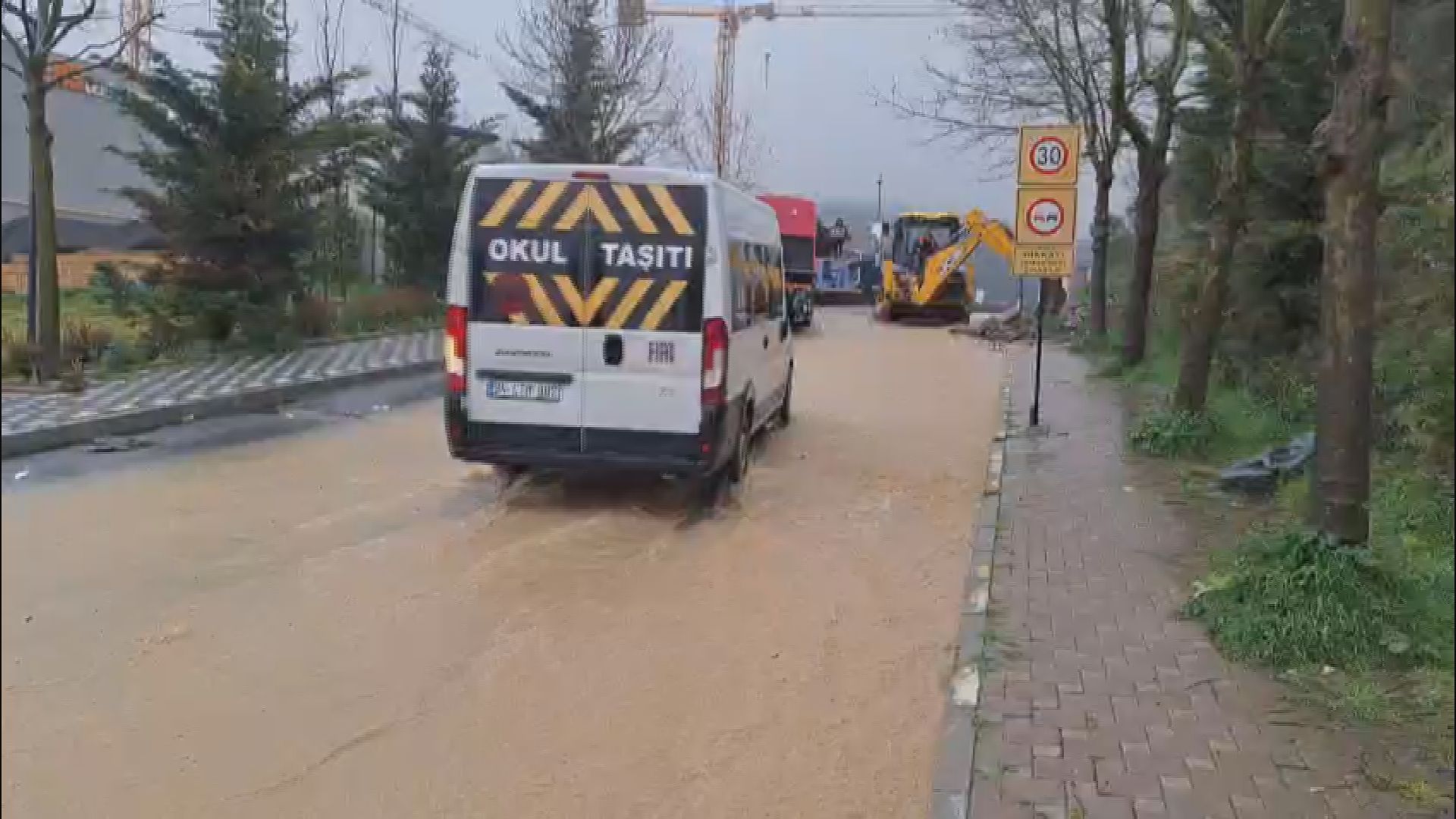 Çekmeköy'de yağışın ardından yola taşan dere nedeniyle Şile Yolu Kadıköy istikameti trafiğe kapatıldı.