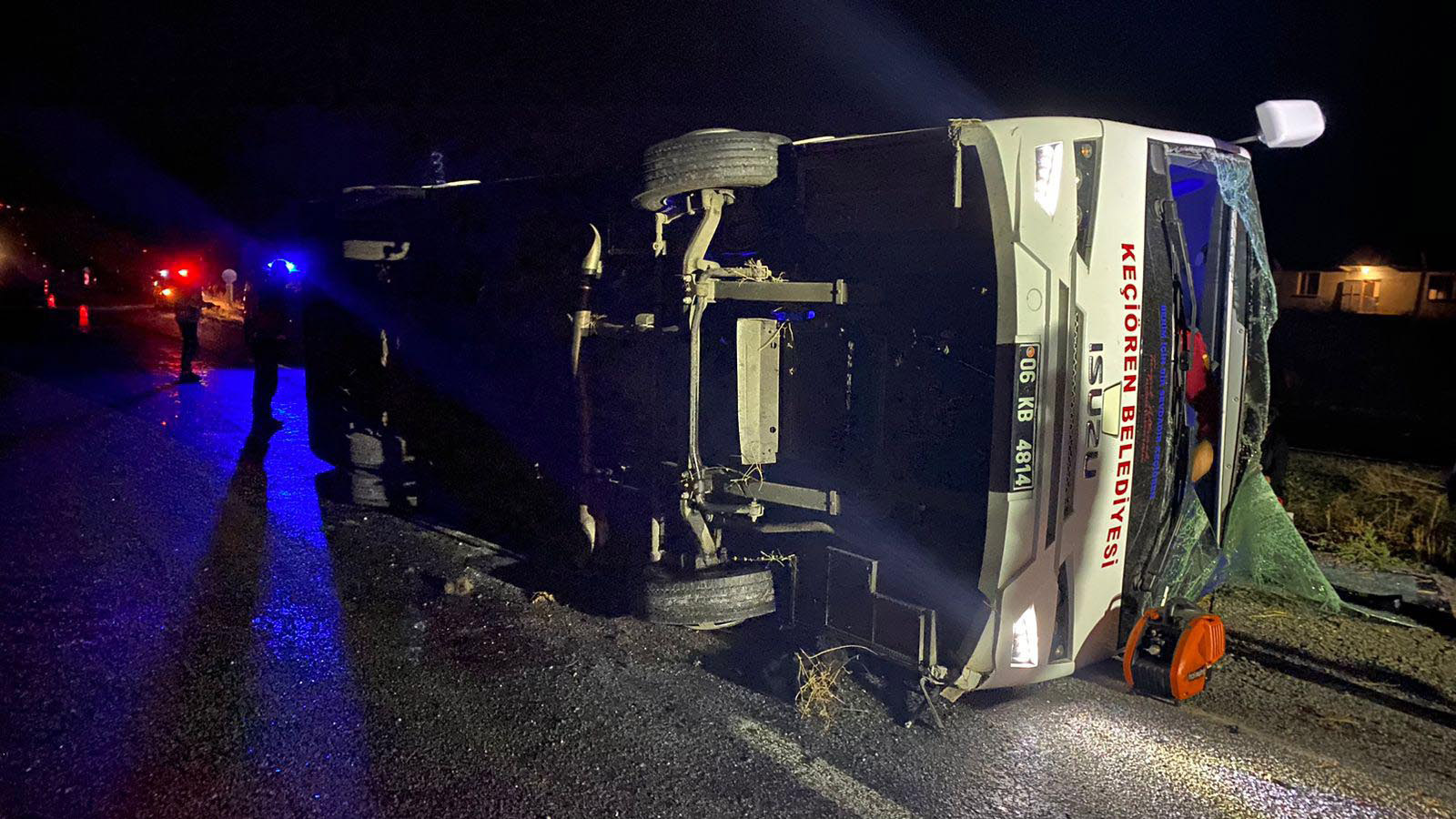 Kaza, saat 02.30 sıralarında D-200 kara yolu Oluközü beldesi yakınında meydana geldi. Ankara’dan Sivas’a cenazeye gidenlerin içinde olduğu, İlker A. (42) yönetimindeki Keçiören Belediyesi’ne ait 06 KB 4814 plakalı midibüs, sürücünün direksiyon kontrolünü kaybetmesiyle devrildi.