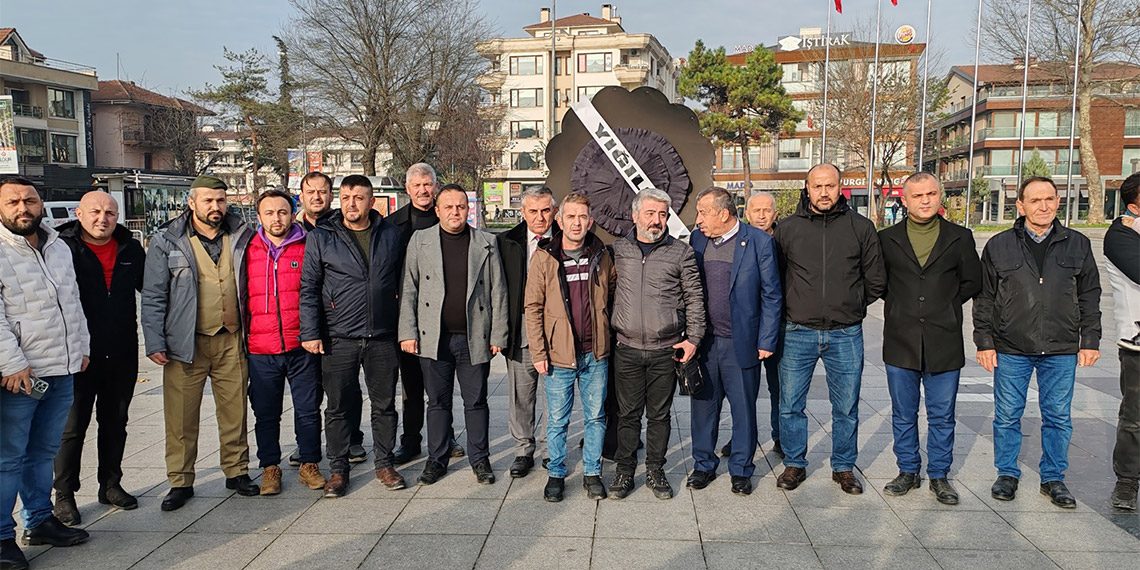 Yığılca Dernekleri Federasyonu üyeleri, CHP Düzce İl Başkanlığı binası önüne siyah çelenk bırakarak Özcan’ın sözlerini protesto etti.