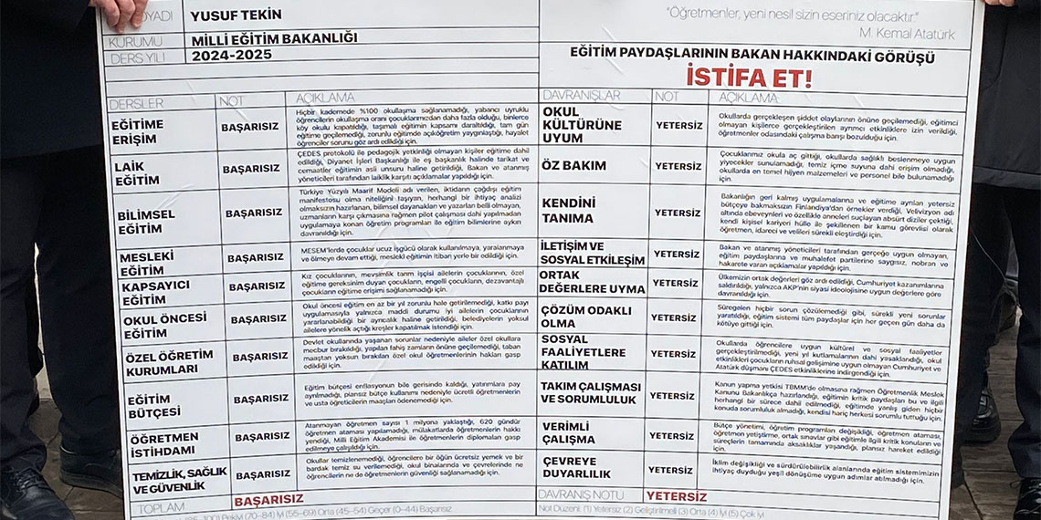 Basın açıklamasının ardından, Özçağdaş ve beraberindeki milletvekilleri, Milli Eğitim Bakanı Yusuf Tekin için hazırladıkları karneyi bakanlığın önüne bıraktı.