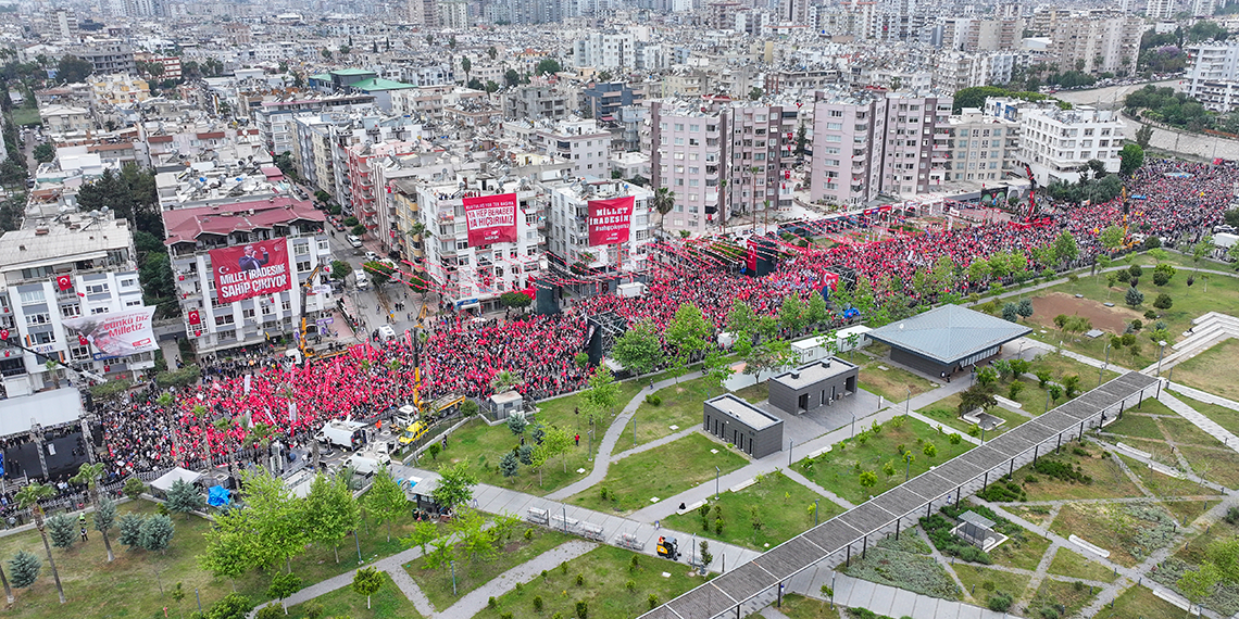 Burada konuşan Cumhuriyet Halk Partisi Lideri Özel, “Toroslara yaslanan, portakalla, limonla bezenen, Akdeniz ile süslenen, barışın ve hoşgörünün şehri güzel Mersin’in güzel insanları, yiğit insanları hepiniz hoş geldiniz, hepinize merhaba. Bugün bir kez daha Mersin’deyiz. Ancak bugün gördüğümüz tablo, Mersin’in iradesinin, milli iradeye sahip çıkma azminin bir göstergesi. Bugün Mersin’de, Saraçhane’de ilk kez olan bir şey oldu. Saraçhane’de 23 Mart günü yani milletin Cumhurbaşkanı adayını belirlemek için koyduğumuz dayanışma sandıklarına koştuğu, oradan Saraçhane’ye geldiği, bütün öğleden sonrayı, akşamı orada geçirdiği, gece saat 22.00’de dronun uçup uçup ucuna varamadığı, menzil dışına çıktığı gibi bugün de Mersin’de dron kalabalığın ucuna ulaşamıyor. Hepiniz hoş geldiniz” dedi. Özel, şunları söyledi: