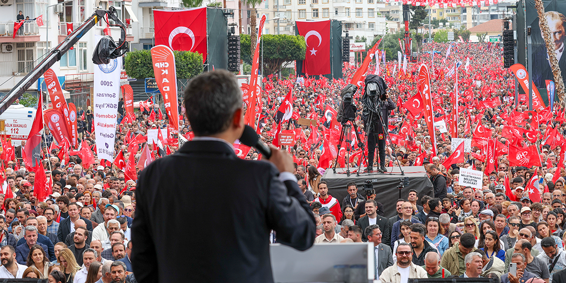 Hata varsa işgal vardır. İşgal varsa ne malın, ne mülkün, ne namusun garantisi vardır. Onun için sandığımıza, adayımıza, ülkemize, namusumuz gibi sahip çıkmaya devam edeceğiz hep birlikte. Dünyada iki çeşit darbe var. Bunlardan biri sivil, biri askeri darbe. Bu ülke ikisin de gördü geçmişte. Ama bu dünya bugünlerde Türkiye’de olan gibisini görmedi. Geçmişte seçilmiş birine değil; elbette geçen yerel seçimin İstanbul Belediye Başkanı’na, ama esas olarak gelecek seçimin Cumhurbaşkanı adayına, Cumhuriyet Halk Partisi’nin, ülkenin kurucu partisinin Cumhurbaşkanı adayına, geleceğin Cumhurbaşkanı’na darbe girişimi vardır. Bu darbe girişiminin karşısında 10 milyonlarca cesur yürek, 10 milyonlarca Cumhuriyetini, Atatürk’ün emaneti sandığını ve demokrasiyi koruyanlar vardır. İşte ben bugün Mersin’de, Yenişehir’de o iradeye sahip çıkan 100 binleri görüyorum, milyonları görüyorum.”