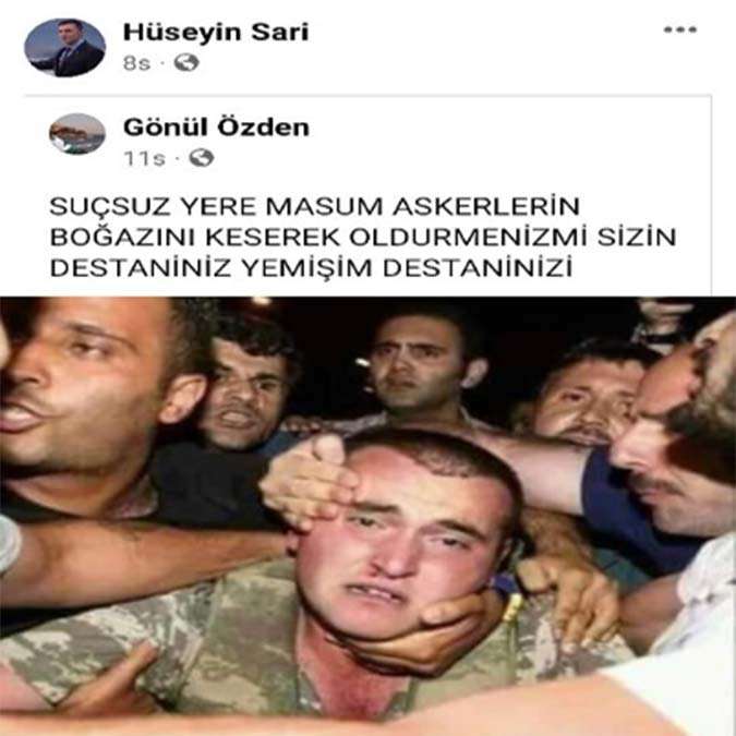 Bakan Soylu, Twitter hesabından yaptığı paylaşımda, “15 Temmuz ihanetine direnen vatandaşlarımızı ve şehitlerimizi aşağılayan H.S. isimli şahıs, Balıkesir polisimiz tarafından gözaltına alındı. Şahıs hakkında; Halkı kin ve düşmanlığa tahrik, suç ve suçluyu övme, terör örgütü propagandası yapma suçlarından hakkında yasal işlem başlatıldı” ifadelerine yer verdi.
