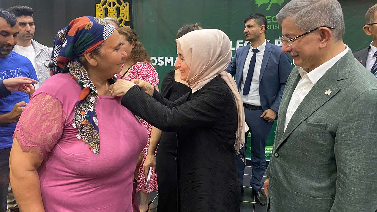 Genel Başkan Ahmet Davutoğlu ve eşi Sare Davutoğlu, partiye katılan yeni üyelere rozetlerini taktı.