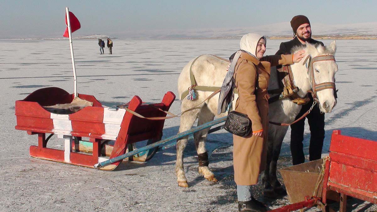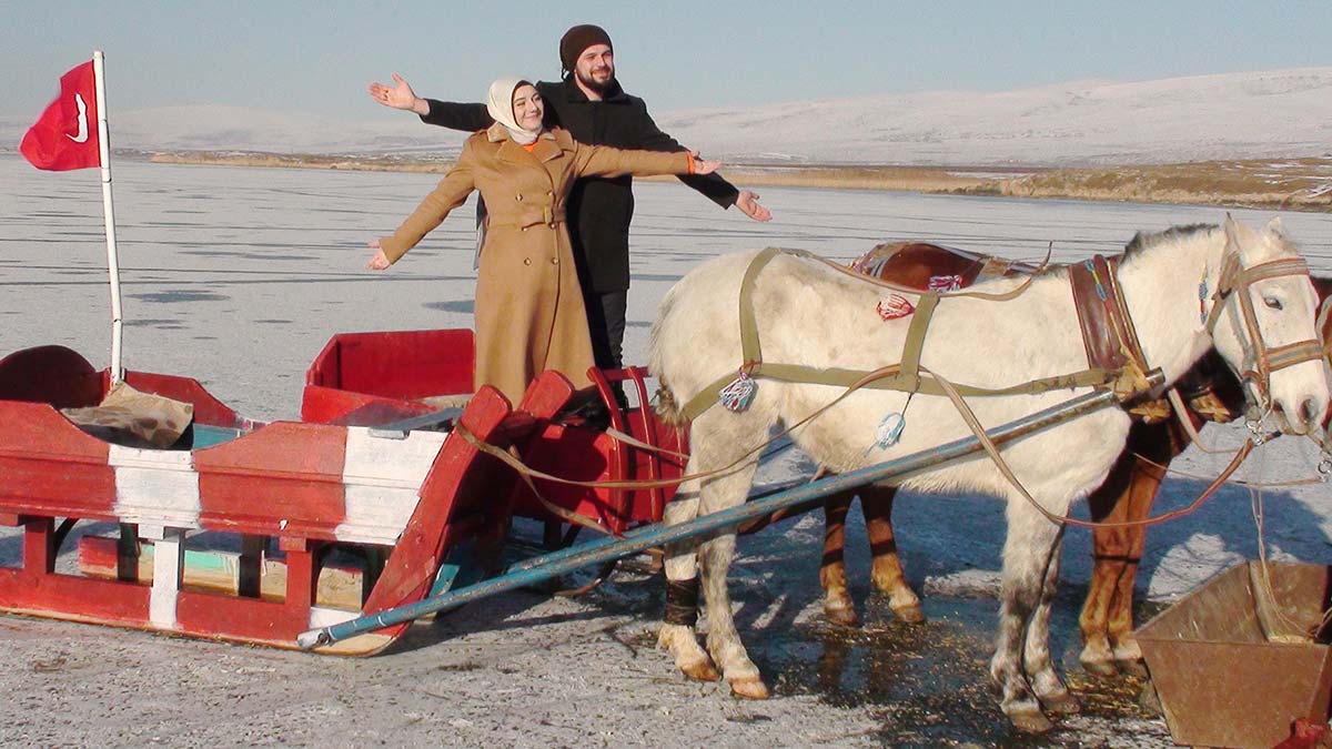 Deniz seviyesinden 1950 metre yükseklikteki 123 kilometrelik alana sahip Çıldır Gölü’nün buz tutan kıyı kesiminde atlı kızaklarla yapılan tur, büyük ilgi görüyor. Taşbaşı köyünde faaliyetlerini sürdüren atlı kızakçılardan Ertan Taşdemir, yerli ve yabancı turistleri geçen sezon olduğu gibi bu kış da 10 dakikası 25 liradan gezdireceklerini söyledi. Gölün şimdilik yüzde 30’luk bölümünün donduğunu belirten Taşdemir, “Mevsimin ilk atlı kızak sezonunun açtık. Bu yıl zam yapmayıp müşterileri geçen yılki fiyatla gezdireceğiz” dedi.