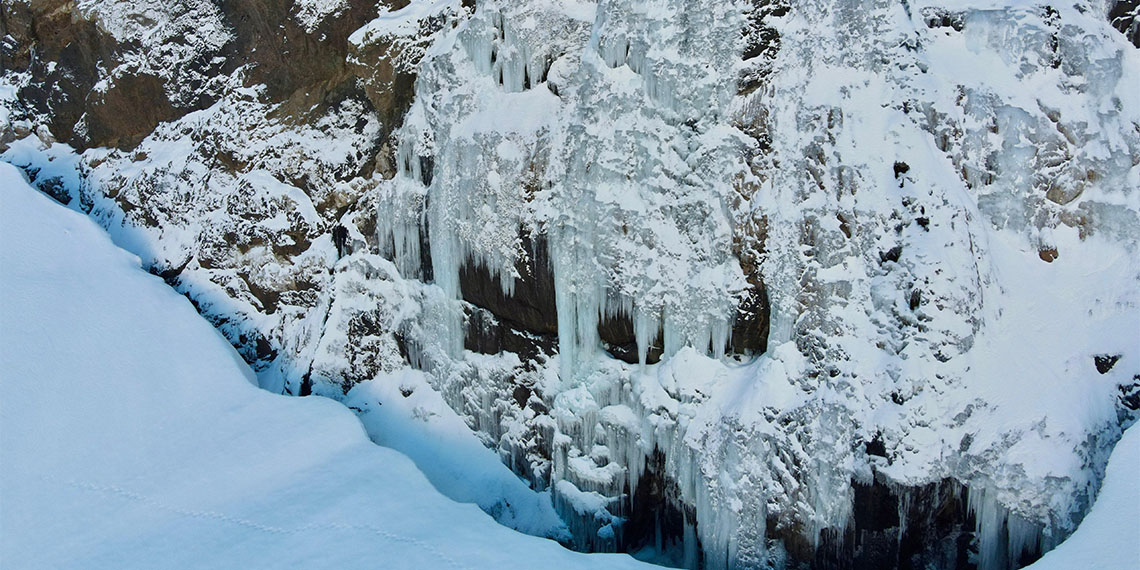 3 arkadaşıyla bölgeye giden dağcı ve doğa fotoğrafçısı Emin Noyan, donan buzul gölü ve şelaleyi görüntüledi.