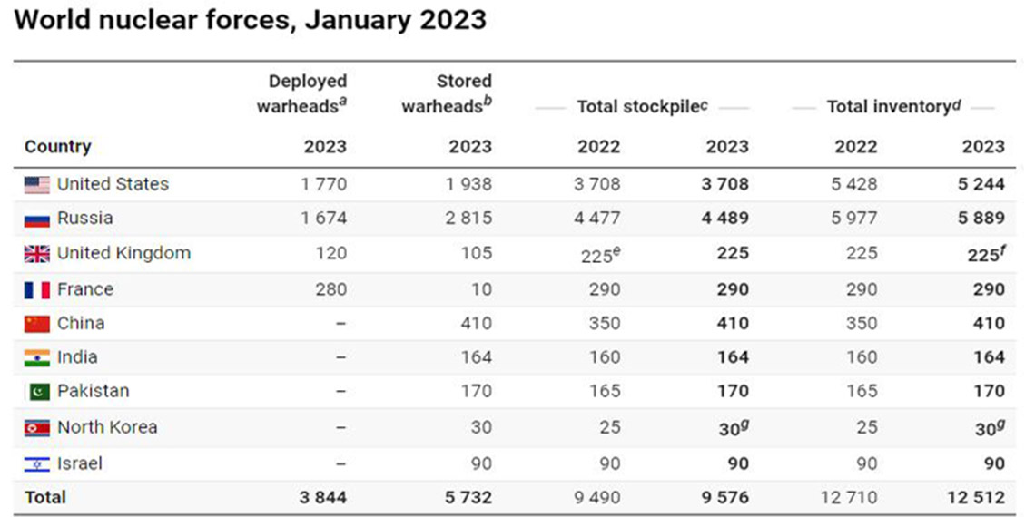 SIPRI raporunda, 9 ülkenin nükleer savaş başlığı sahibi olduğu görülüyor. Raporda bu ülkeler, ABD, Rusya, İngiltere, Fransa, Çin, Hindistan, Pakistan, Kuzey Kore ve İsrail olarak sıralanıyor. Nükleer savaş başlıklarının sayısı ise ‘konuşlandırılmış’ ve ‘depolanmış’ olarak ikiye ayrılıyor.