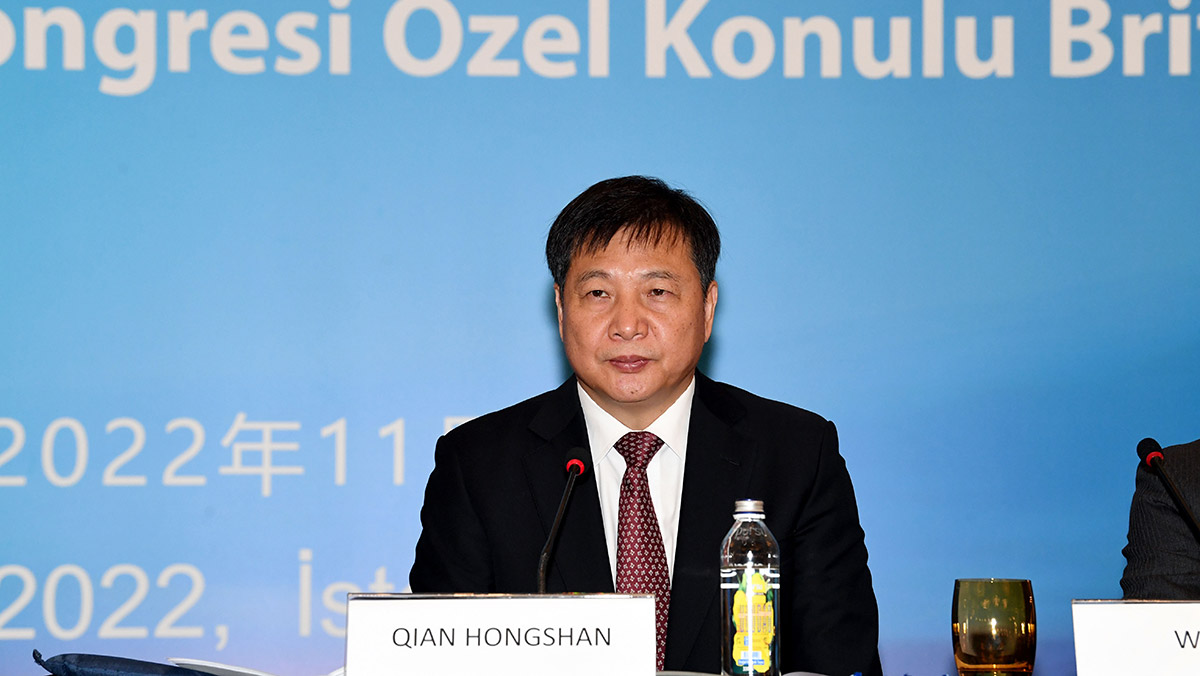 Sözlerine Türkiye’de olmaktan büyük memnuniyet duyduğunu söyleyerek başlayan Çin Komünist Partisi Merkez Komitesi Dış İrtibat Bakan Yardımcısı Qian Hongshan, “İstiklal Caddesi’ndeki bombalı saldırıdan büyük üzüntü duyduk. Çin ve Türkiye hem kadim bir medeniyete sahip iki ülke büyük mesafeleri olmasına rağmen iki ülkenin dostluk temasları çok eskilere dayanıyor.