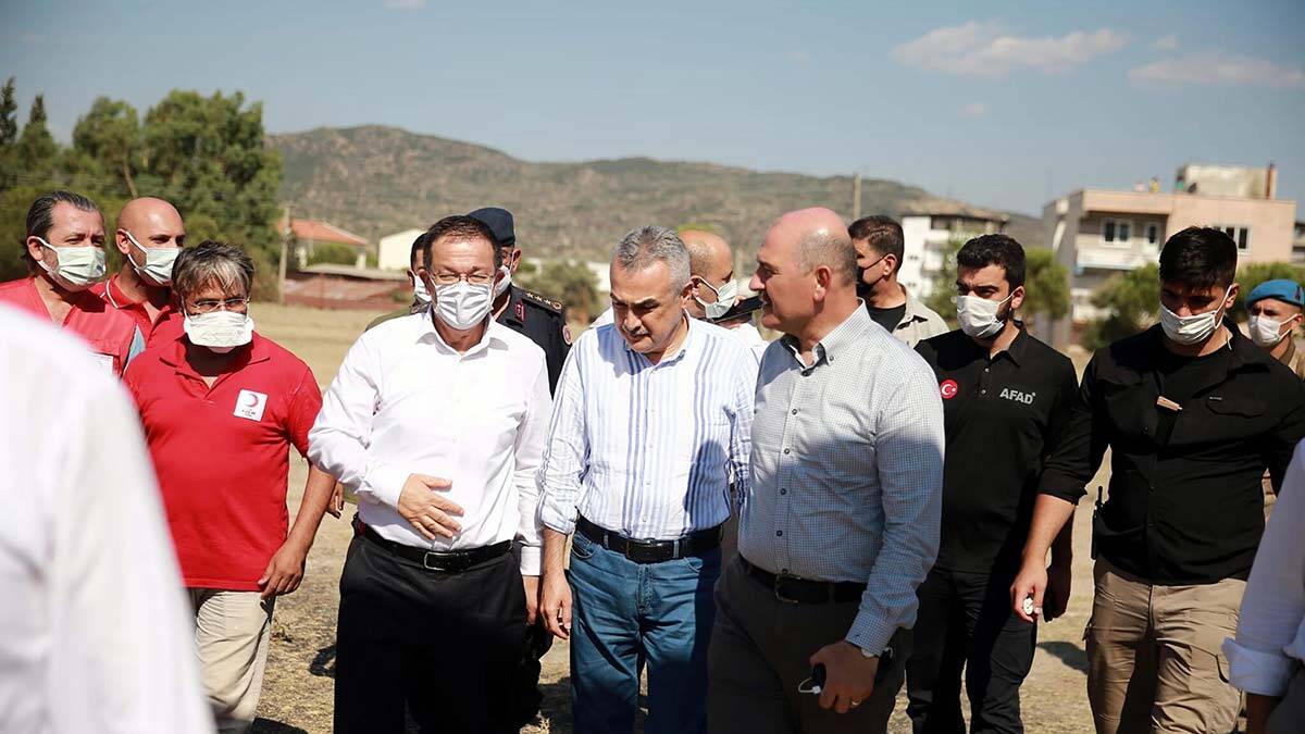Bakanları Aydın Valisi Hüseyin Aksoy, AK Parti Aydın milletvekilleri, Mustafa Savaş, Bekir Kuvvet Erim ve Rıza Posacı ile daire müdürleri ile ilçe belediye başkanları karşıladı. İki Bakan ayrı ayrı arazi araçlarıyla bölgede inceleme yapıp, yetkililerden bilgi aldıktan sonra bölgeden ayrıldı.