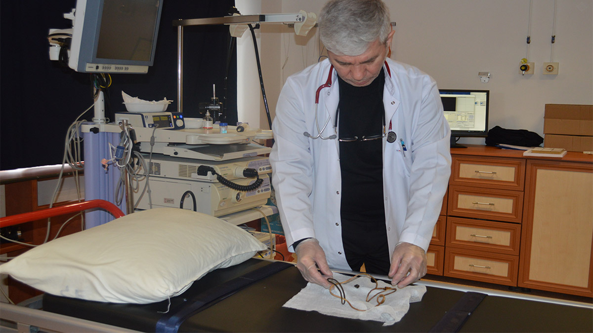 Ameliyatı gerçekleştiren Prof. Dr. Yaşar Doğan, kablonun bir ucunun ince bağırsağa geçmesi nedeniyle zorlandıklarını ifade ederek, “Hastanın kusma ve karın ağrısı şikayetleri olması üzerine sağlık kuruluşuna başvurulmuş. Orada yapılan incelemelerde hastanın midesinde kablo tespit edilmesi üzerine bize danışıldı. 112 aracılığıyla hastaya gerekli işlemi yapıp yapmayacaklarını bize sordular. Biz de hastayı bize gönderebileceklerini kendilerine ilettik. Hasta bize geldikten sonra ön hazırlık yapıldı ve gerekli olan açlık süresinin ardından hastaya endoskopik işlem yapıldı. Endoskopik işlemle midedeki kablo çıkarıldı. Kabloyu çıkarırken açıkçası zorlandık, çünkü kablonun bir ucu ince bağırsağa geçmişti. İşlem başarılı bir şekilde sonlandırıldıktan sonra hasta sağlıklı bir şekilde evine gönderildi” dedi.