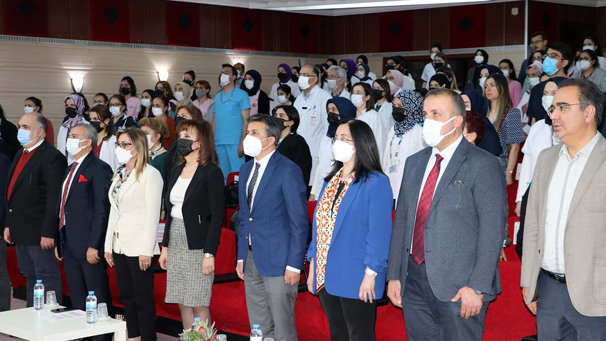 İl Sağlık Müdürü Doç. Dr. Akelma, Etlik Zübeyde Hanım Kadın Hastalıkları Eğitim ve Araştırma Hastanesi Konferans Salonu’nda düzenlenen ‘Gebede ve Yenidoğanda Covid-19 Enfeksiyonu’ konulu panele katıldı. Panelin açılış konuşmasını yapan Doç. Dr. Akelma, Ankara’da koronavirüs vakalarının yüzde 90’ınını kamu hastanelerinin, yüzde 10’unu ise kamu üniversiteleri ve özel hastanelerin takip ettiğini belirterek, “Arttığında da azaldığında da bunu en çok hisseden özellikle kamu hastaneleri kısmı oldu. Geldiğimiz noktada vaka sayılarının azalması bizi bir nebze rahatlattı ama Covid-19 bitmedi.