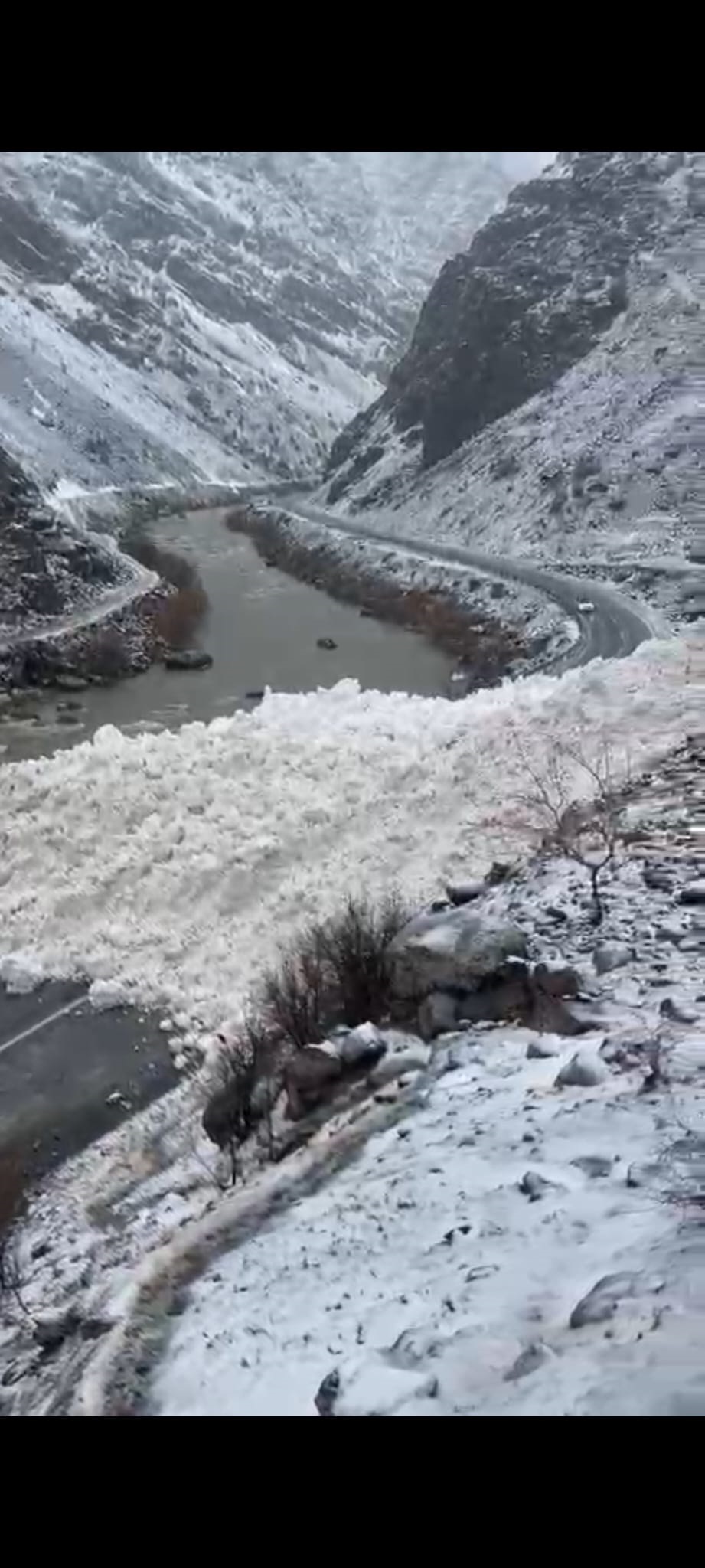 Çığın düşme anı, cep telefonu kamerasıyla görüntülendi.