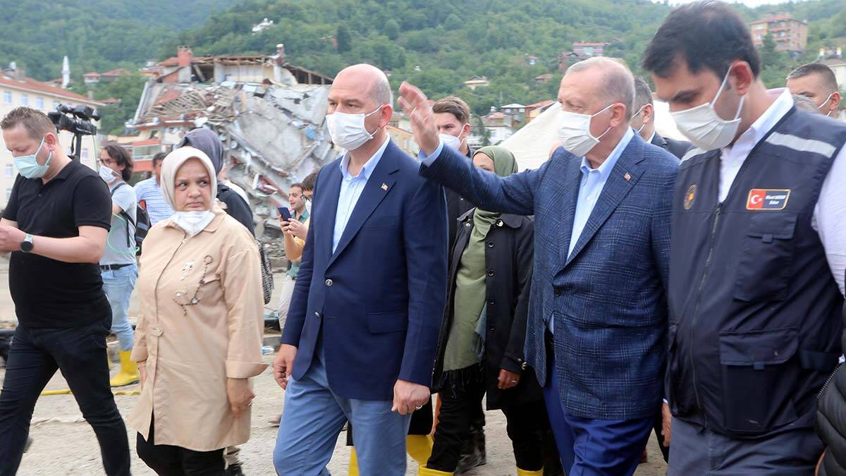 İçişleri Bakanı Süleyman Soylu, Ulaştırma ve Altyapı Bakanı Adil Karaismailoğlu, Çevre ve Şehircilik Bakanı Murat Kurum ile yerinde değerlendirmeler yapacağını belirten Cumhurbaşkanı Erdoğan, “Diğer bölgelerde de yine bakan arkadaşlarım var. Milletvekili arkadaşlarımızla beraber bölgedeyiz. Buralardaki tespitlerimizi yaptıktan sonra adımlarımızı atacağız” dedi.