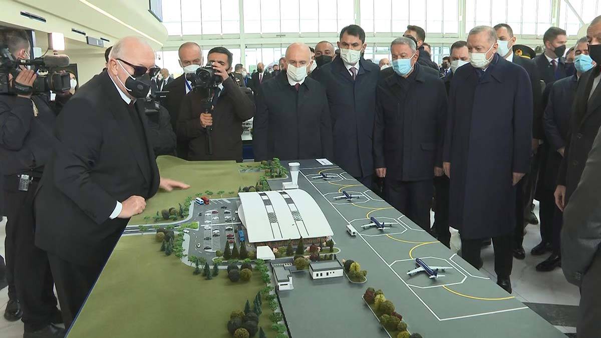 Azerbaycan’daki günübirlik ziyaretine devam eden Cumhurbaşkanı Recep Tayyip Erdoğan, Azerbaycan Cumhurbaşkanı İlham Aliyev ile açılışını yaptığı Füzuli Uluslararası Havalimanı’nda incelemelerde bulundu.