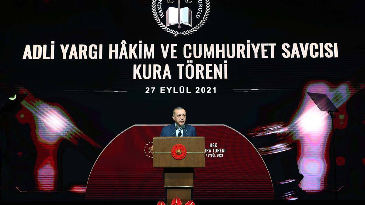 Cumhurbaşkanı Erdoğan, Cumhurbaşkanlığı Külliyesi’nde düzenlenen ’24’üncü Dönem Adli Yargı Hakim ve Cumhuriyet Savcıları Kura Töreni’ne katıldı. Burada konuşan Erdoğan, görevlerine başlayacak 1008 adli yargı hakimi ve cumhuriyet savcısı ile 7 idari yargı hakimini tebrik ederek, “Şu anda ülkemiz genelinde toplam 21 bin 844 hakim ve savcı görev yapmaktadır. Bugünkü kura törenimizle inşallah bu sayı, 22 bin 859’a yükseltmiş olacağız” diye konuştu.