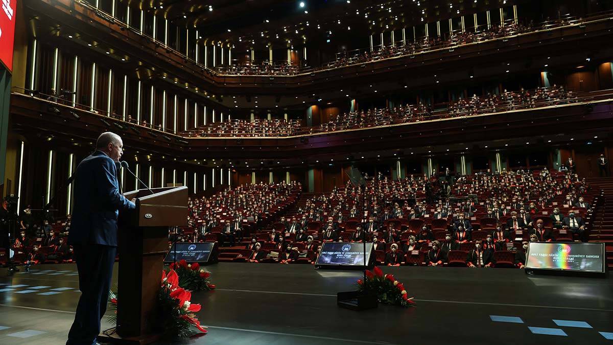 Türk hukuk sisteminin en büyük açmazının neredeyse her 10 yılda bir antidemokratik müdahaleye maruz kalması olduğuna değinen Erdoğan, şöyle konuştu:
