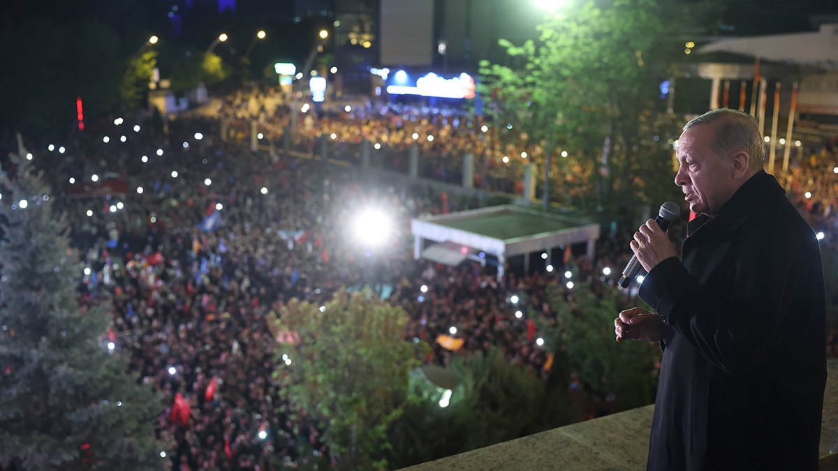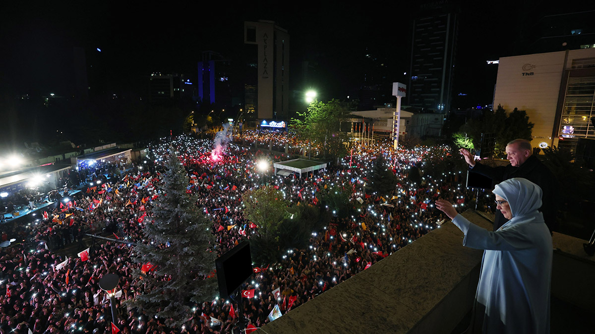 Cumhurbaşkanı Erdoğan balkondan hitap etti. Erdoğan, “Birileri mutfakta, biz de balkonda. Ülkemiz 14 Mayıs seçimleriyle bir demokrasi şölenini daha alnının akıyla tamamlamıştır. Henüz kesin sonuçlar belli olmamakla beraber açık ara önde bulunuyoruz. Hem yurt içi oyların gayrı resmi sonuçlarının belli olması hem yurt dışı oyların sayımının biraz daha vakit alacağı anlaşılıyor.
