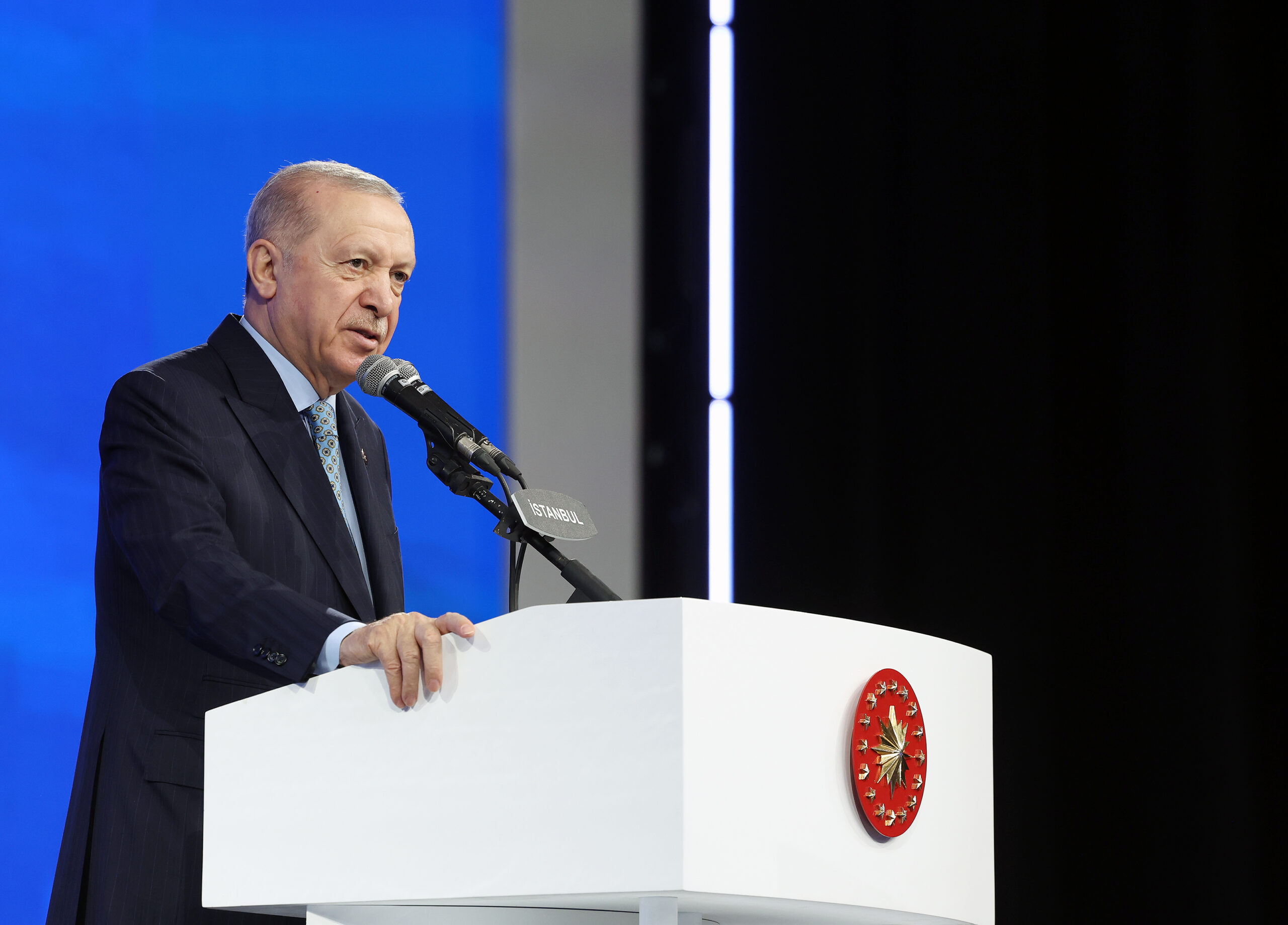 Kura çekiminde konuşan Cumhurbaşkanı Erdoğan, “Ev sahibi Türkiye İstanbul Kura Çekim Töreni’nde sizlerle beraber olmaktan büyük bir memnuniyet duyuyorum. Sizlerin vasıtasıyla aziz İstanbul’un iki yakasında, 39 ilçesinde yaşayan her bir vatandaşıma buradan selamlarımı, sevgilerimi gönderiyorum. Bugün yine milletimizle bir aradayız. Bugün yine milletimizle aynı safta, aynı duyguda, aynı kararlılıktayız.