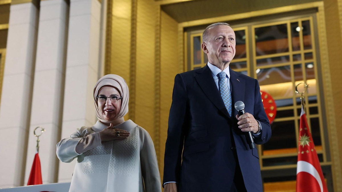 Cumhurbaşkanı Seçimi ikinci tur oylamasında, kesin olmayan sonuçlara göre yeniden seçilen Cumhurbaşkanı Erdoğan, Cumhurbaşkanlığı Külliyesi’nde toplanan kalabalığa hitap etti. Eşi Emine Erdoğan ile birlikte kalabalığı selamlayan Erdoğan’a, MHP Genel Başkanı Devlet Bahçeli, Yeniden Refah Partisi Genel Başkanı Fatih Erbakan, BBP Genel Başkanı Mustafa Destici, Demokratik Sol Parti Genel Başkanı Önder Aksakal, HÜDA PAR Genel Başkanı Zekeriya Yapıcıoğlu ve Sinan Oğan da eşlik etti.