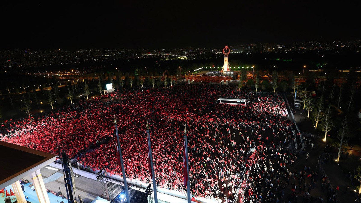 Partililerin sevgi gösterilerinde bulunduğu Erdoğan, “Bu millet sevilmez mi? Biz severiz. Kandil’dekiler sevmez. Onların uzantıları sevmez. Ama biz severiz. İşte şu anki tablo sevgililerin tablosu. Resmi rakam 320 bin kişi şu anda burada. Cumhur İttifakı’nı mahcup etmediniz. Cumhur İttifakı’nı bu yolda yalnız koymadınız. Bu yolda beraber yürüdük. Gece gündüz demeden yürüdük. Ve sizler bu görevi yine bizlere verdiniz. İnşallah Türkiye Yüzyılı’nı beraber inşa ve ihyaya devam ediyoruz” dedi.