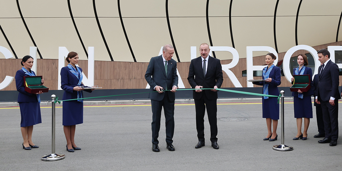 Cumhurbaşkanı Erdoğan, Azerbaycan Cumhurbaşkanı İlham Aliyev ile Azerbaycan’ın işgalden kurtardığı topraklarda inşa ettiği üçüncü havalimanı olan Laçın Uluslararası Havalimanı’nın açılışını yaptı.
