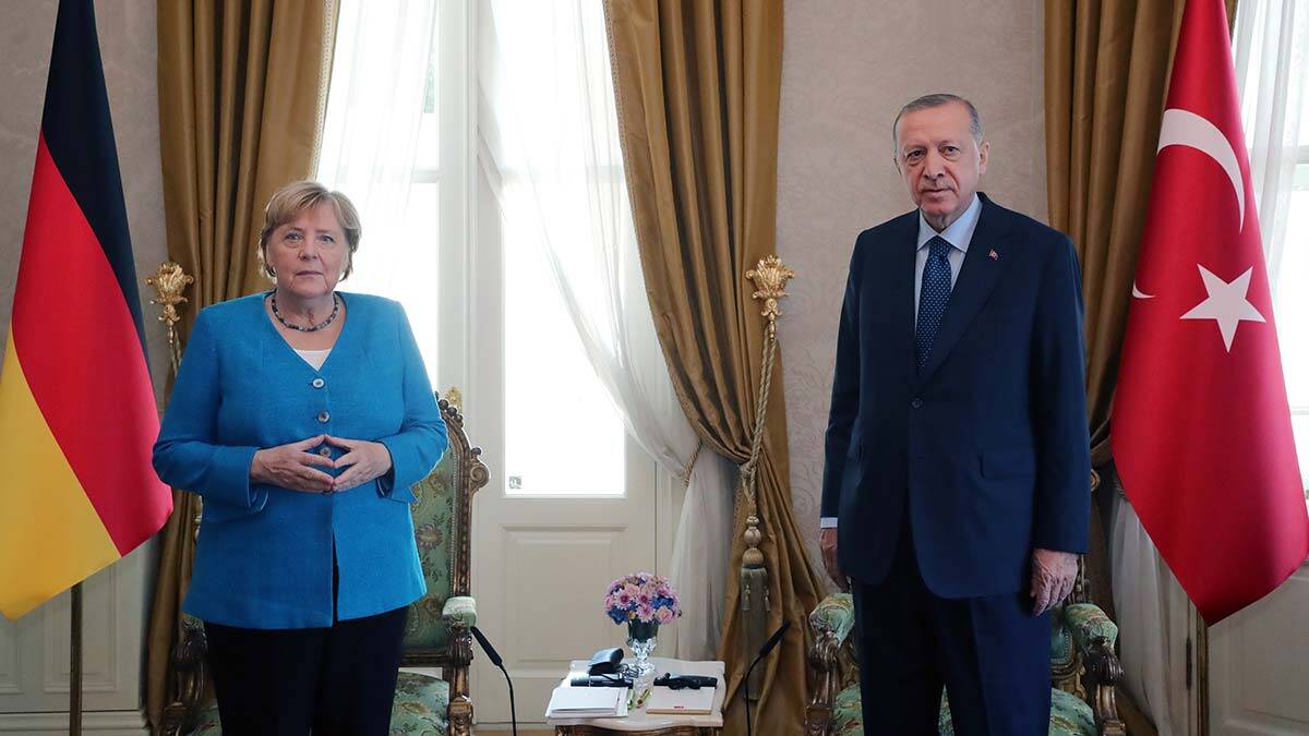 “Türkiye olarak tam üyelik yolunda önümüze çıkan onca zorluğa ve engele rağmen Sayın Merkel’in bu süreçteki müspet katkılarını her zaman takdirle hatırlayacağız.” diyen Erdoğan, “Sayın Merkel’le bugünkü görüşmelerimizde ikili ilişkilerimiz başta olmak üzere gündemimizdeki meseleleri ayrıntılı şekilde ele aldık.Türkiye-Avrupa Birliği ilişkilerinin geliştirilmesine verdiğimiz önemi teyit ettik. Gümrük Birliğinin güncellenmesi, vize serbestisi, 18 Mart Mutabakatı’nın yenilenmesi başta olmak üzere kritik meselelerdeki beklentilerimizi değerli dostumla bir kez daha paylaştım. Doğu Akdeniz, Afganistan, Libya ve Suriye’deki gelişmeler hakkında fikir teatisinde bulunduk. İkili ticaret hacmimizin en kısa sürede 50 milyar dolar seviyesine ulaşmasını hedefliyoruz. Almanya’daki Türk toplumu, ilişkilerimizin en önemli sosyal yönünü oluşturuyor. Ortak zenginliğimizi teşkil ediyor” şeklinde konuştu.