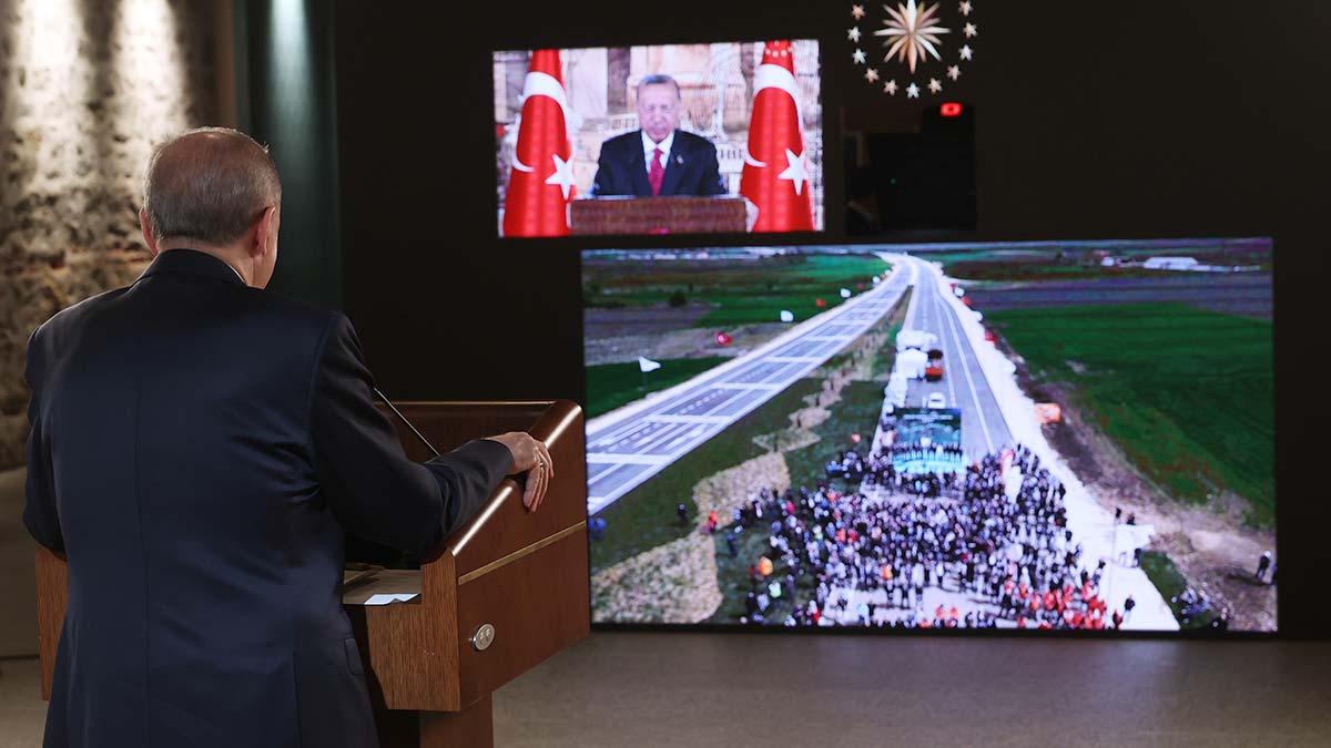 Cumhurbaşkanı Recep Tayyip Erdoğan Beşiktaş’ta bulunan Dolmabahçe Çalışma Ofisi’nden canlı bağlantı ile Pınarhisar ve Çakıllı Çevre Yolları Açılış Töreni’ne katıldı.