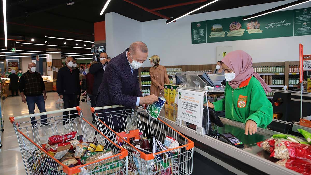 Tarım Kredi Kooperatifince Kısıklı’da açılan satış mağazasına uğrayıp alışveriş yapan Cumhurbaşkanı Recep Tayyip Erdoğan’a eşi Emine Erdoğan ve Kızı Sümeyye Erdoğan Bayraktar eşlik etti. Ürünleri inceleyip market arabasına koyan Cumhurbaşkanı Erdoğan, eşi Emine Erdoğan ve Sümeyye Erdoğan Bayraktar, mağazadaki vatandaşlarla sohbet etti. Burada yaklaşık yarım saat kalan Erdoğan, ödemesini nakit yaptıktan sonra marketten ayrıldı.