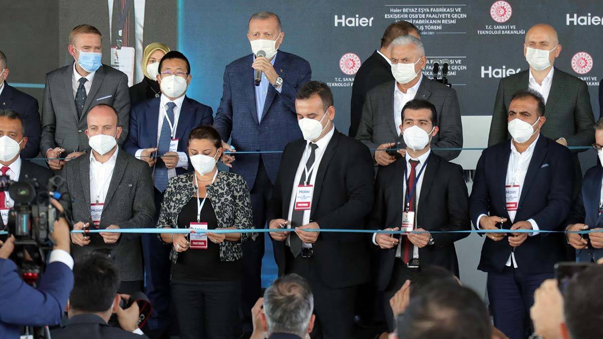 Cumhurbaşkanı Recep Tayyip Erdoğan, Çinli Haier Beyaz Eşya Fabrikası ve Eskişehir Organize Sanayi Bölgesi’nde faaliyete geçen 52 yeni fabrikanın açılışını gerçekleştirdi. Açılış törenine Cumhurbaşkanı Erdoğan’ın yanı sıra Sanayi ve Teknoloji Bakanı Mustafa Varank, Ulaştırma ve Altyapı Bakanı Adil Karaismailoğlu, Çevre ve Şehircilik Bakanı Murat Kurum, Gençlik ve Spor Bakanı Mehmet Muharrem Kasapoğlu, Eskişehir Valisi Erol Ayyıldız, AK Parti Genel Başkan Vekili Binali Yıldırım, AK Parti genel başkan yardımcıları, AK Parti Eskişehir milletvekilleri ile çok sayıda davetli katıldı. Erdoğan, Çinli Haier firmasının güvenli liman olarak Türkiye’yi seçtiğini söyledi. Bu yatırımı Türk ekonomisine güvenin işareti olarak gördüğünü belirten Cumhurbaşkanı Erdoğan, şunları kaydetti: