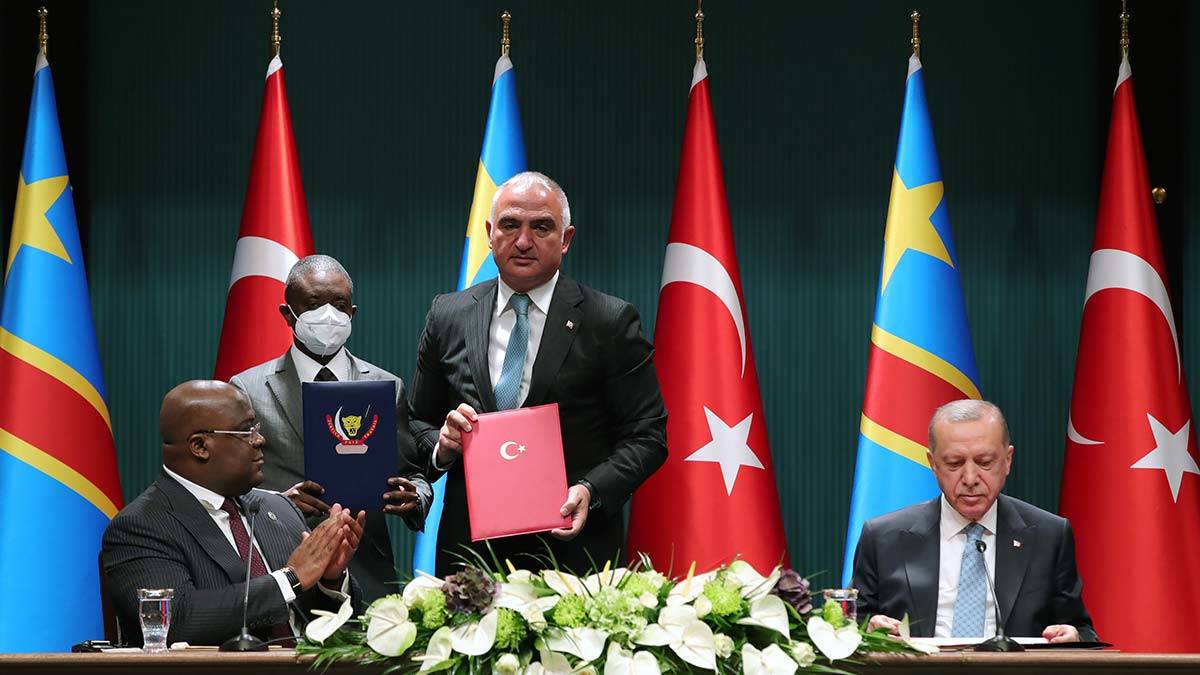 Cumhurbaşkanı Recep Tayyip Erdoğan, Kongo Demokratik Cumhuriyeti Cumhurbaşkanı Felix Antoine Tshisekedi Tshilombo ile baş başa ve heyetler arası görüşmesinin ardından anlaşmaların imza töreni ve ortak basın toplantısı düzenlendi. Cumhurbaşkanı Erdoğan, Kongo Demokratik Cumhuriyeti’nin Afrika kıtasında, kendileri için önemli bir ortak olduğunu belirterek, “Bu tarihi ziyaretin ülkelerimiz arasındaki ilişkilerde yeni bir sayfa açacağına inanıyorum. Değerli dostumla görüşmelerimizde ilişkilerimizi tüm yönleriyle değerlendirme fırsatı bulduk. İş birliğimizi geliştirme yönündeki irademizi karşılıklı olarak teyit ettik” diye konuştu.
