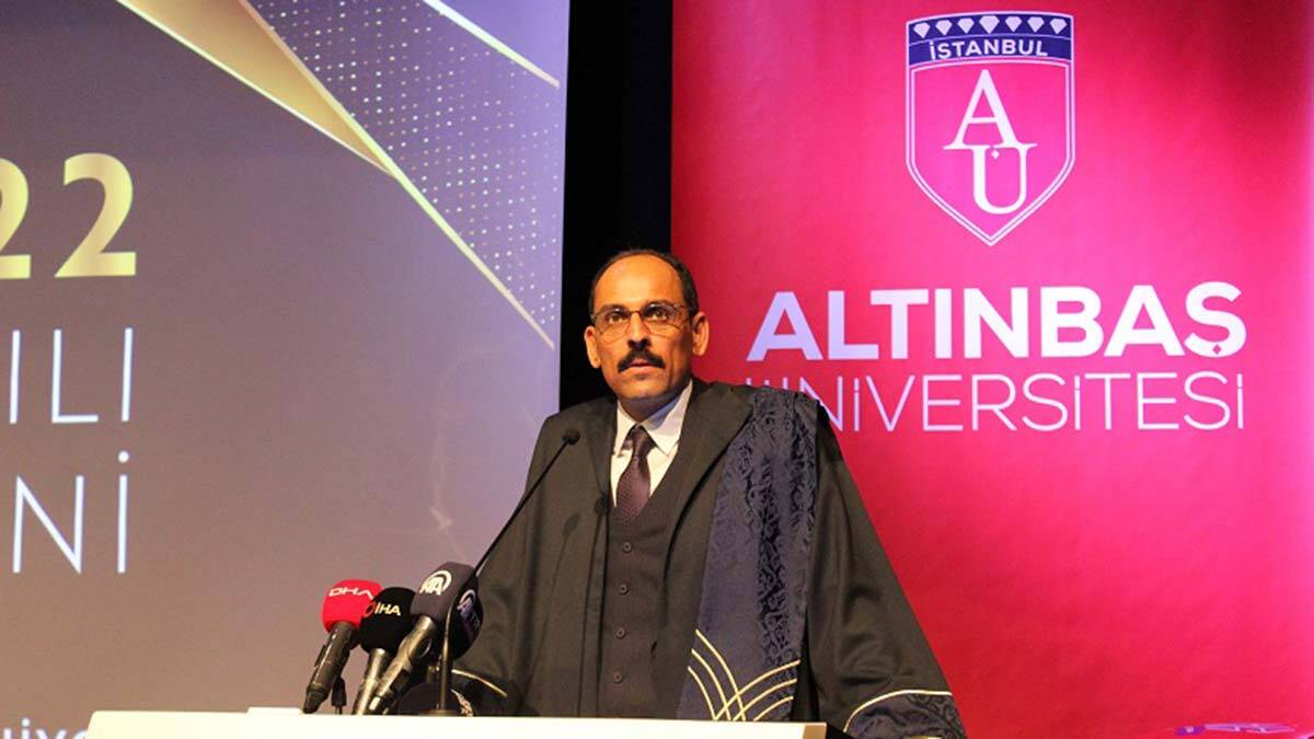 Öğrencilere yeni akademik yılda başarılar dileyen Kalın, “2021-2022 akademik yılının verimli, bereketli, uğurlu, iyinin, güzelin, doğrunun yükseldiği bir yıl olmasını diliyorum. Altınbaş Üniversitesi’ne tüm camiasına başarılar diliyorum. Fahri doktora unvanını bana tevdi etme inceliğinde ve lütfunda bulunan üniversitemize, konsey üyelerine, yönetimine çok teşekkür ediyorum, mahcup ettiniz. Bu yolculukta hepinize başarılar diliyorum. 4 yıl sonra üniversiteden mezun olurken daha iyi, güzel, doğru insanlar olarak, kendini çok daha iyi yetiştirmiş insanlar olarak, hayata hazır birer birey olarak yolunuza devam etmenizi diliyorum” ifadelerini kullandı.