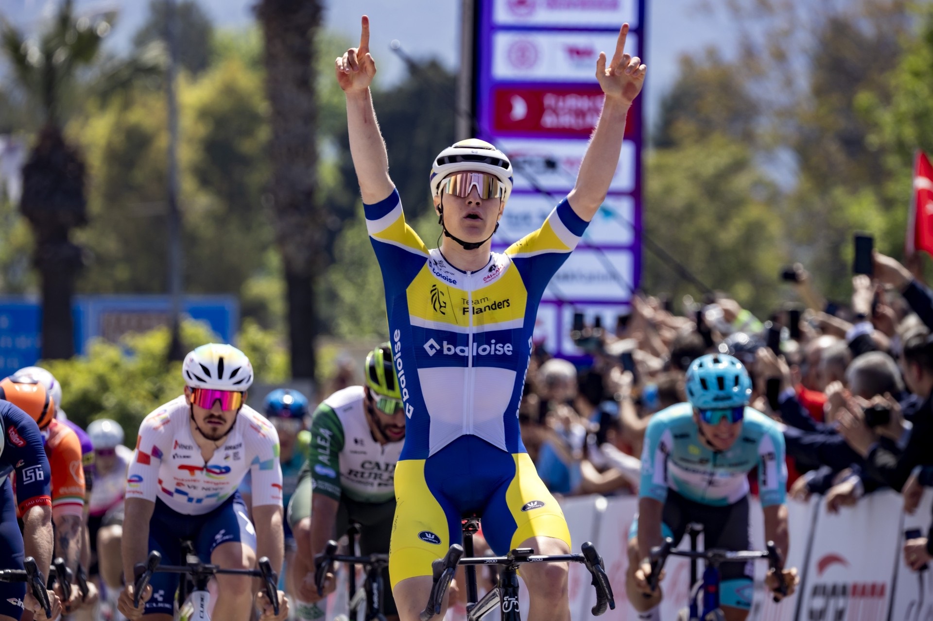 Bu sene 61'inci kez koşulan Cumhurbaşkanlığı Türkiye Bisiklet Turu'nun 154.7 kilometrelik Çeşme-Selçuk etabını Team Flanders-Baloise Takımı'ndan Tom Crabbe 3 saat 23 dakika 57 saniye ile kazandı.