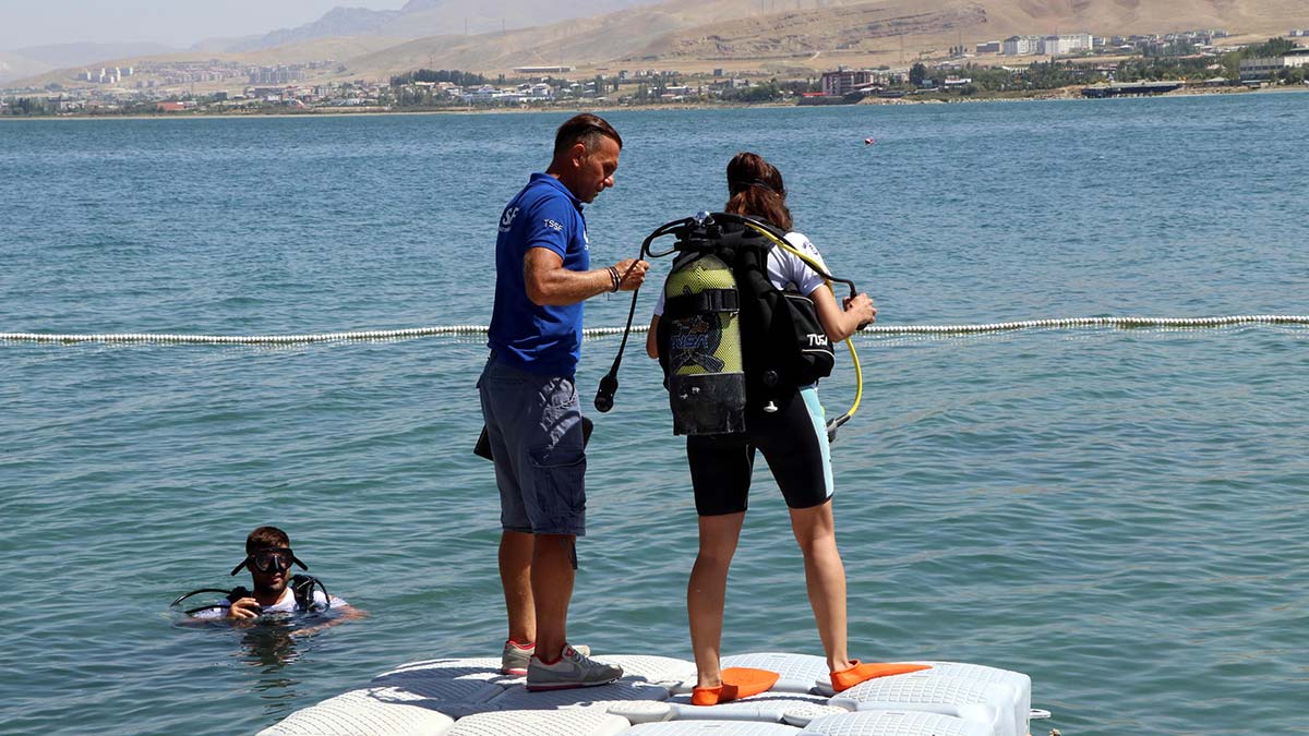 Dünyanın en büyük sodalı, Türkiye’nin ise en büyük gölü olma özelliği taşıyan Van Gölü, son yıllarda dalgıçların da yeni adresi oldu. Van Gölü’ne dalmak isteyenlere ve dalışa yeni başlayanlara eğitimler de veriliyor. Türkiye Su Sporları Federasyonu 2 yıldız eğitmeni ve rehber dalıcısı olan Kadir Erekinci de 9 yıldır bu alanda çalışma yapıyor. Bir yandan dalış hizmeti veren Erekinci diğer yandan kendisiyle birlikte dalan öğrencileriyle gölde bulduğu çöpleri çıkarıyor.