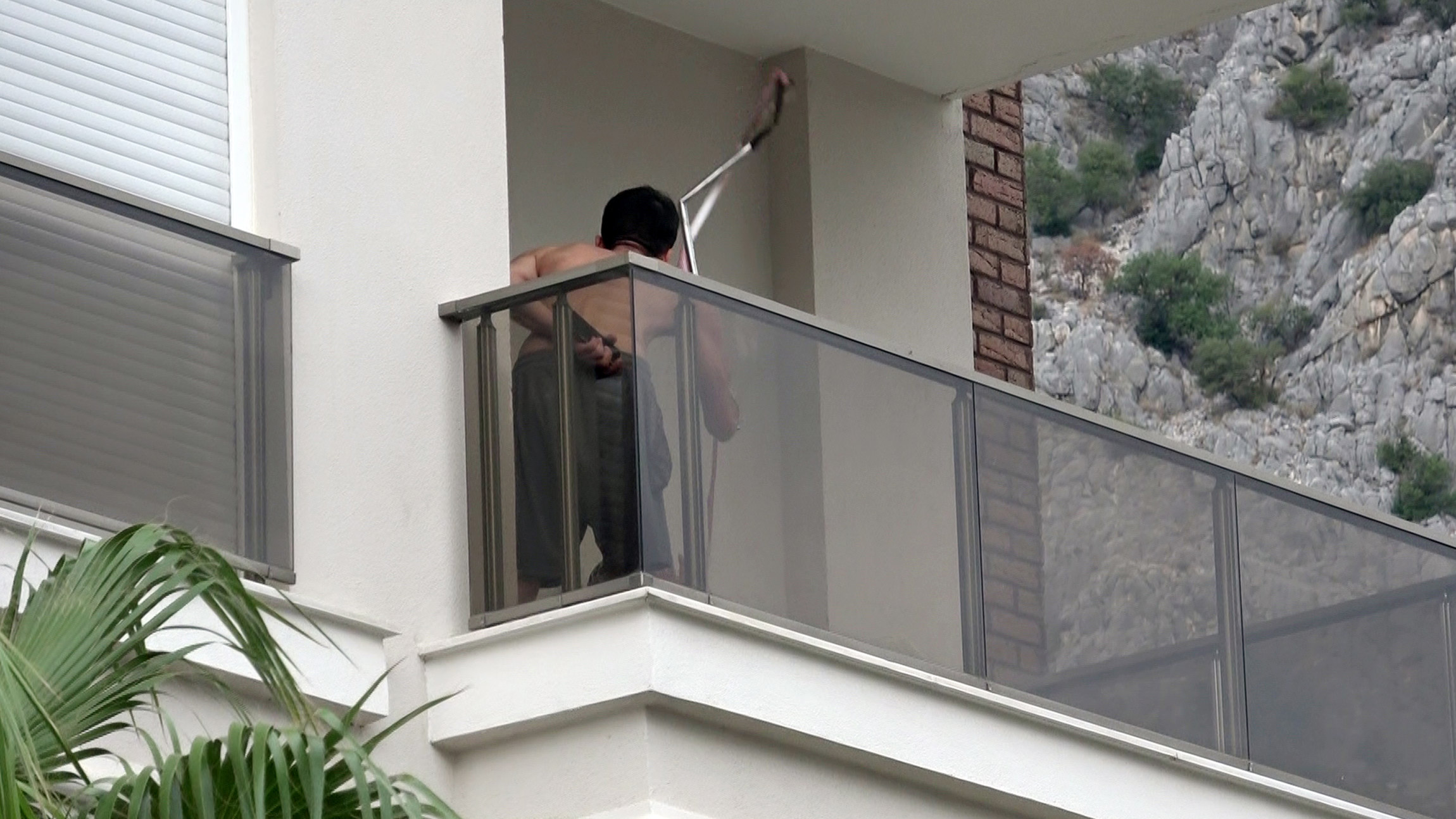 Antalya’da psikolojik sorunları olduğu belirtilen E.Ç. (39), metal çubukla dövdüğü annesini balkondan atmak istedi. Özel harekat polislerinin eve girmesinin ardından balkondan sarkan E.Ç., kendisini itfaiye brandasının üzerine bıraktı.