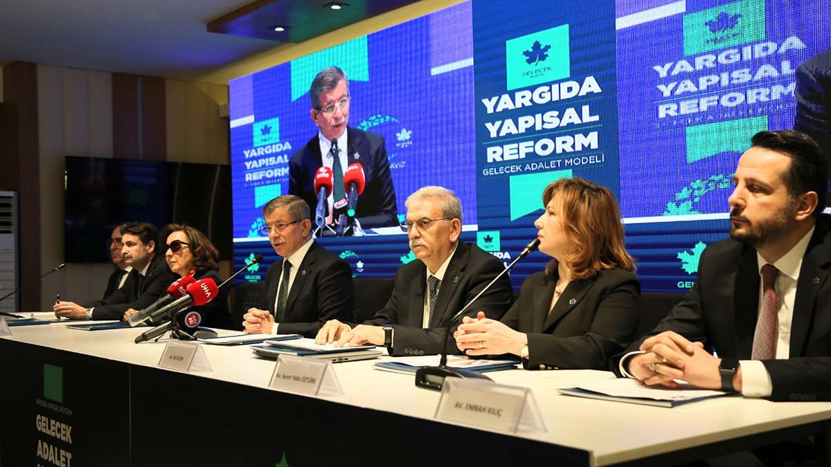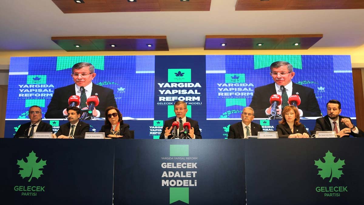 Gelecek Partisi Genel Başkanı Ahmet Davutoğlu, “Yargı sisteminin tümüyle yeniden yapılandırılmasına ihtiyaç var” diyerek Yargıda Yapısal Reform başlığı altında “Gelecek Adalet Modeli” raporunu açıkladı.