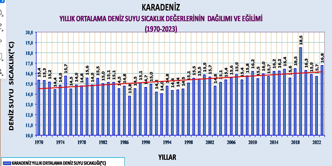 Küresel iklim değişikliği nedeniyle yağış rejimindeki değişkenliklerin yanı sıra Karadeniz suyu yüzey sıcaklığındaki artış, meteorolojik olayları olumsuz etkiliyor. Su yüzey sıcaklığının mevsimde 22 derecelerde olması gerekirken 5 derece yükselip, 27 derece seviyelerinde seyretmesi, deniz ekosisteminin yanında su buharlaşmasının artmasıyla ani, lokal ve şiddetli yağışlara neden oluyor. Yağışlarla beraber bölgede sel, heyelan ve taşkın riskinin arttığını söyleyen KTÜ Deniz Bilimleri Fakültesi Öğretim Üyesi Prof. Dr. Coşkun Erüz, deniz suyundaki ısı artışından dolayı denizlerdeki avcılık yönteminin de değişmesi gerektiğini belirterek, “Eylül’ün sonu geliyor, ekim ayına doğru gidiyoruz ama deniz suyu sıcaklığı 27 derecelerde geziyor. Bu normal standardın çok üzerinde. Karadeniz’in ortalama deniz yüzeyi sıcaklığı 22 derece civarında olmalı. Uzun yıllar ortalaması bu şekilde. Ama şu anda ölçtüğümüzde 22 dereceyi biz 40 metrede görüyoruz. 40 metrede olması demek, çok yüksek miktarda ısının depolandığı anlamına geliyor. Bundan dolayı Karadeniz’de denizde yaşayan organizmalarında davranışlarında değişiklik yaşanacaktır” dedi.