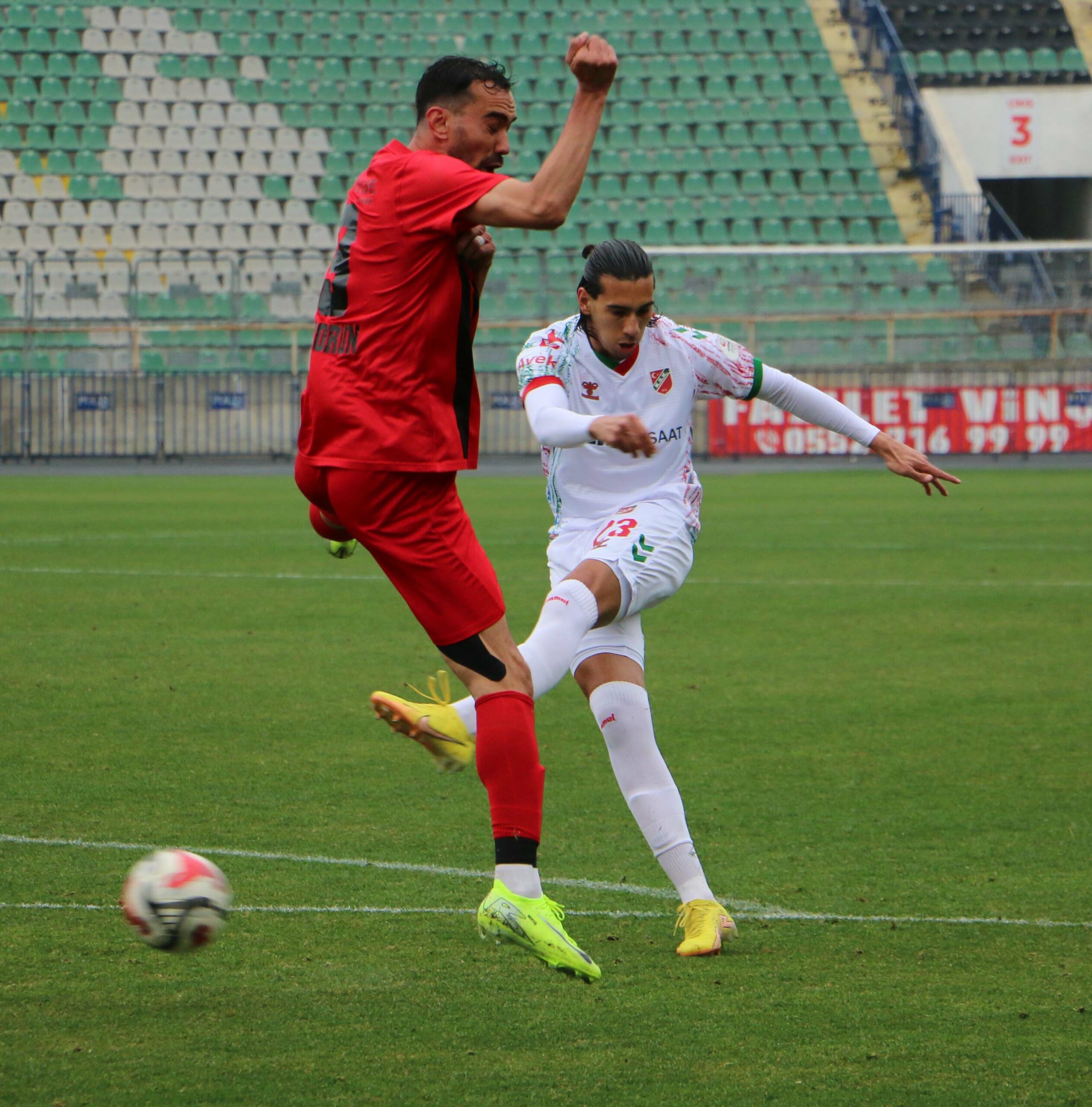 38’inci dakikada Mücahit’le verkaç yaparak soldan ceza sahasına giren Karşıyakalı Selim’in çaprazdan şutunu kaleci Umutcan çıkardı.