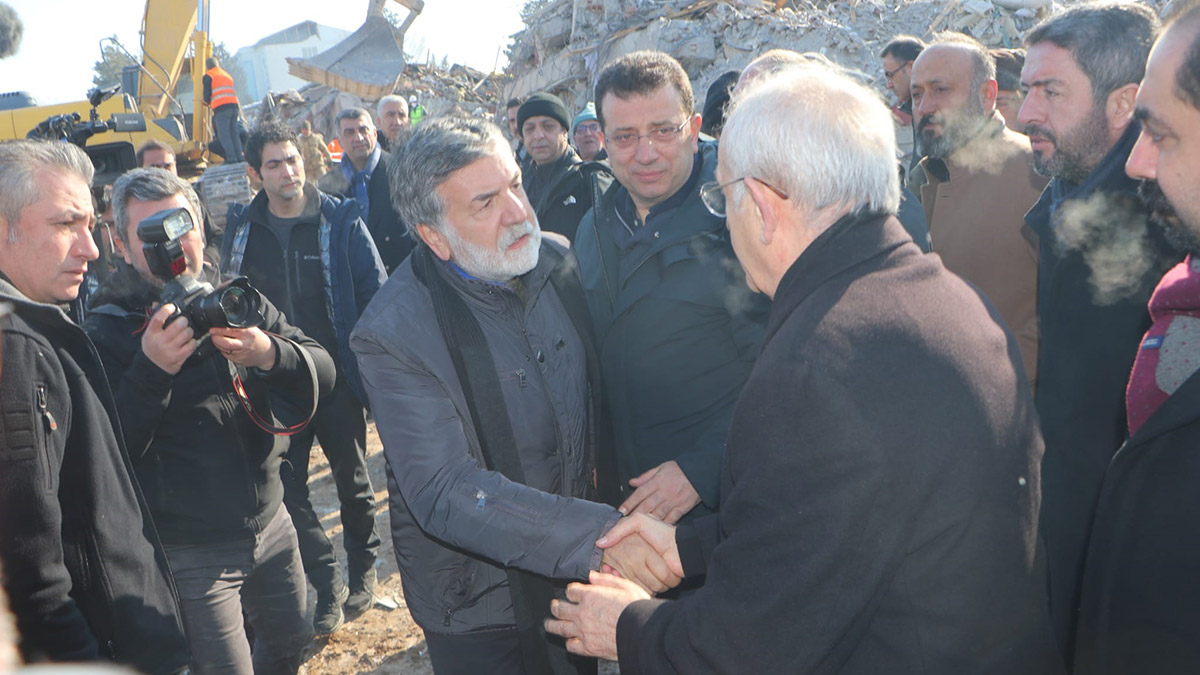 CHP Genel Başkanı Kemal Kılıçdaroğlu, genel başkan yardımcısı Veli Ağbaba, İstanbul Büyükşehir Belediye Başkanı Ekrem İmamoğlu, Ankara Büyükşehir Belediye Başkanı Mansur Yavaş ile birlikte Malatya’nın Yeşilyurt ilçesinde yıkılan binaların enkazında süren çalışmaları inceledi. Özalper Mahallesi’ndeki Hayat Sitesi’nin enkazında ekiplerin çalışmasını izleyen Kılıçdaroğlu, deprem bölgesine çadır gönderilmesi konusunda çağrıda bulundu.