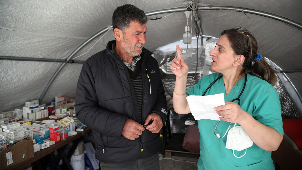 Samandağ’da eczanesi ağır hasar gören eczacı Erkan Düzce, TEB’in konteyner eczanesinde gönüllü hizmet veriyor. Samandağ’da 46 eczaneden sadece 2’sinin ayakta kalabildiğini belirten Düzce, “Bu konuda yetkililerle buraya konteyner eczane tahsis edilmesi için görüşme yaptık. Çünkü ne kadar burada gönüllü olarak yapsak da bir sürü ilacımız maalesef yok. Sadece belirli kalemler geliyor ve tükeniyor. Burada mutlaka bizim serbest eczanelerimizi aktif hale getirmemiz gerekiyor.