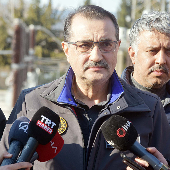Şu anda dağıtım şirketleri AFAD ile koordineli şekilde hasarlı bölgelerin dışındaki noktalar elektrik verilmeye başlandı. Evlerine girecek olan vatandaşlarımız, uzmanların yapacağı değerlendirmenin ardından hasarsız olan binalara elektrik dağıtım şirketlerine başvurma şartıyla elektrik almalarını sağlayacağız ve buna başladık. Şehirlerde genel aydınlatma, sokak ve cadde aydınlatması ile ilgili eksiklerimizi gideriyoruz. Elektrik tarafında 3 binden fazla teknik personel çalışma yapıyor. Çevre illerden birçok teknik personeli bu bölgeye intikal ettirdik ve bu personellerimiz gece gündüz demeden aralıksız çalışıyor.”